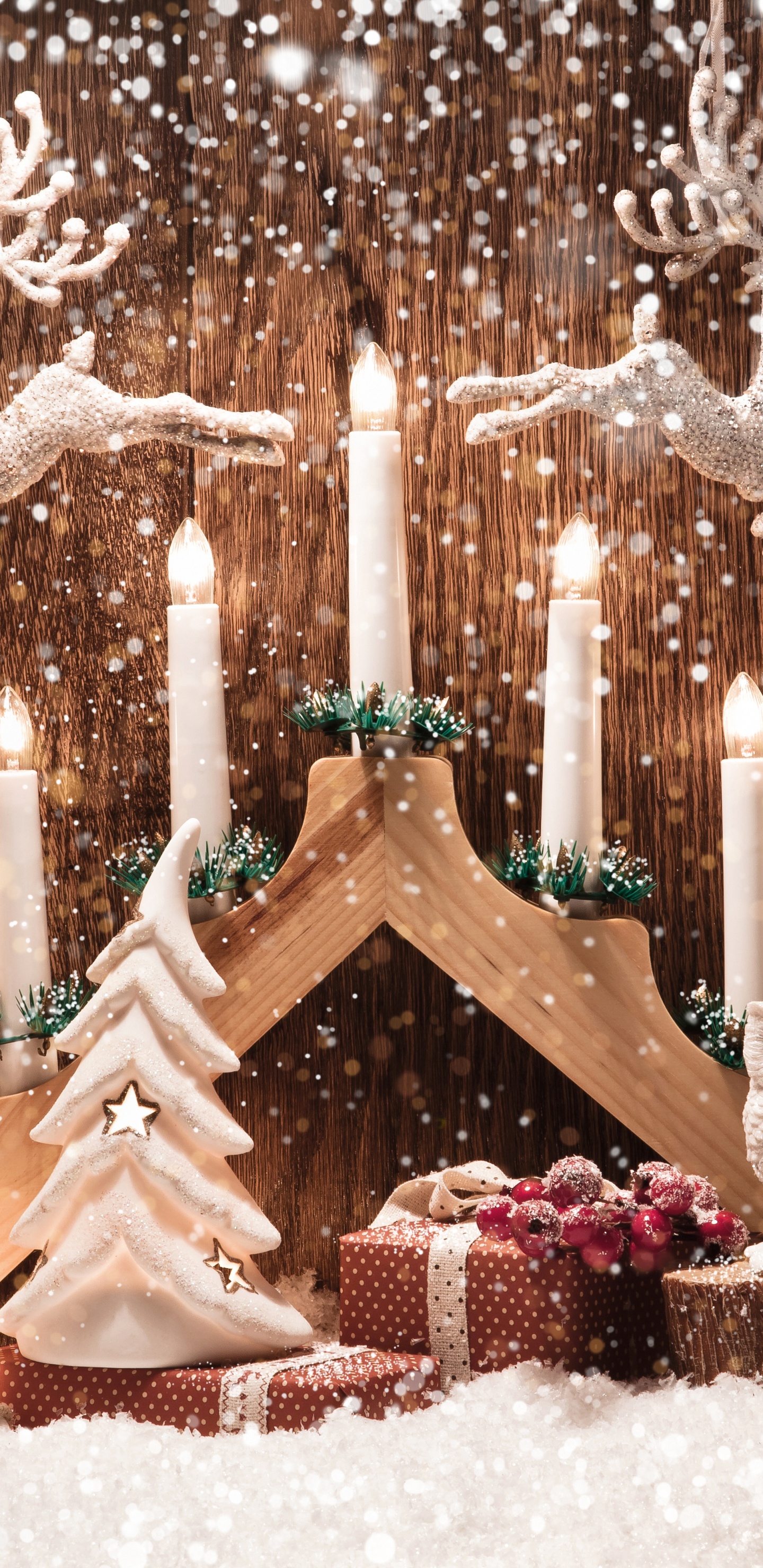 Обои Рождественский день, свеча, Новый год, снег, зима для Samsung Galaxy S8/S8+/S9/S9+/Note 8/Note 9 QHD, заставка, 1440x2960 картинка