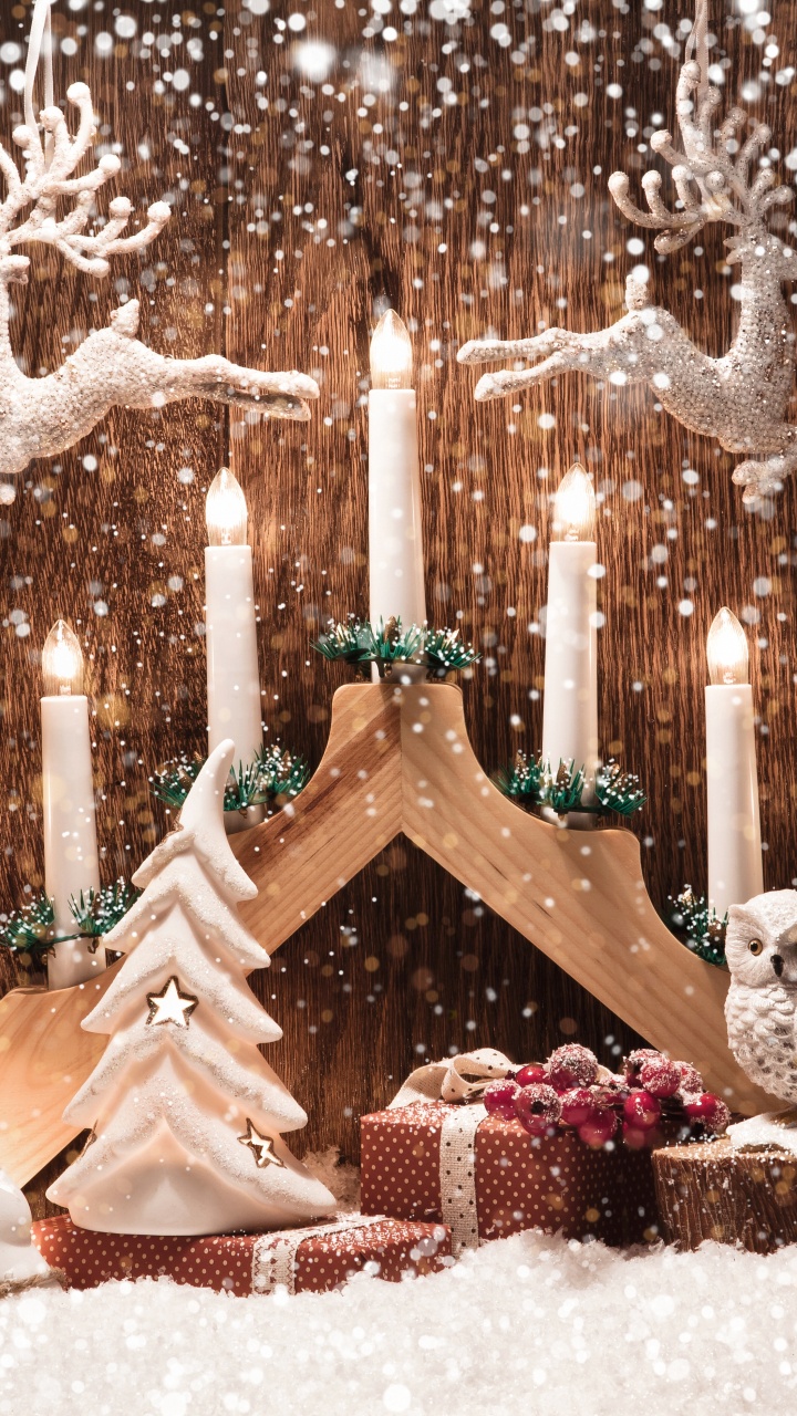 Обои Рождественский день, свеча, Новый год, снег, зима для HD Samsung Galaxy S3/J3/J4/J5, Meizu M5, Sony Xperia L1/L2, заставка, 720x1280 картинка