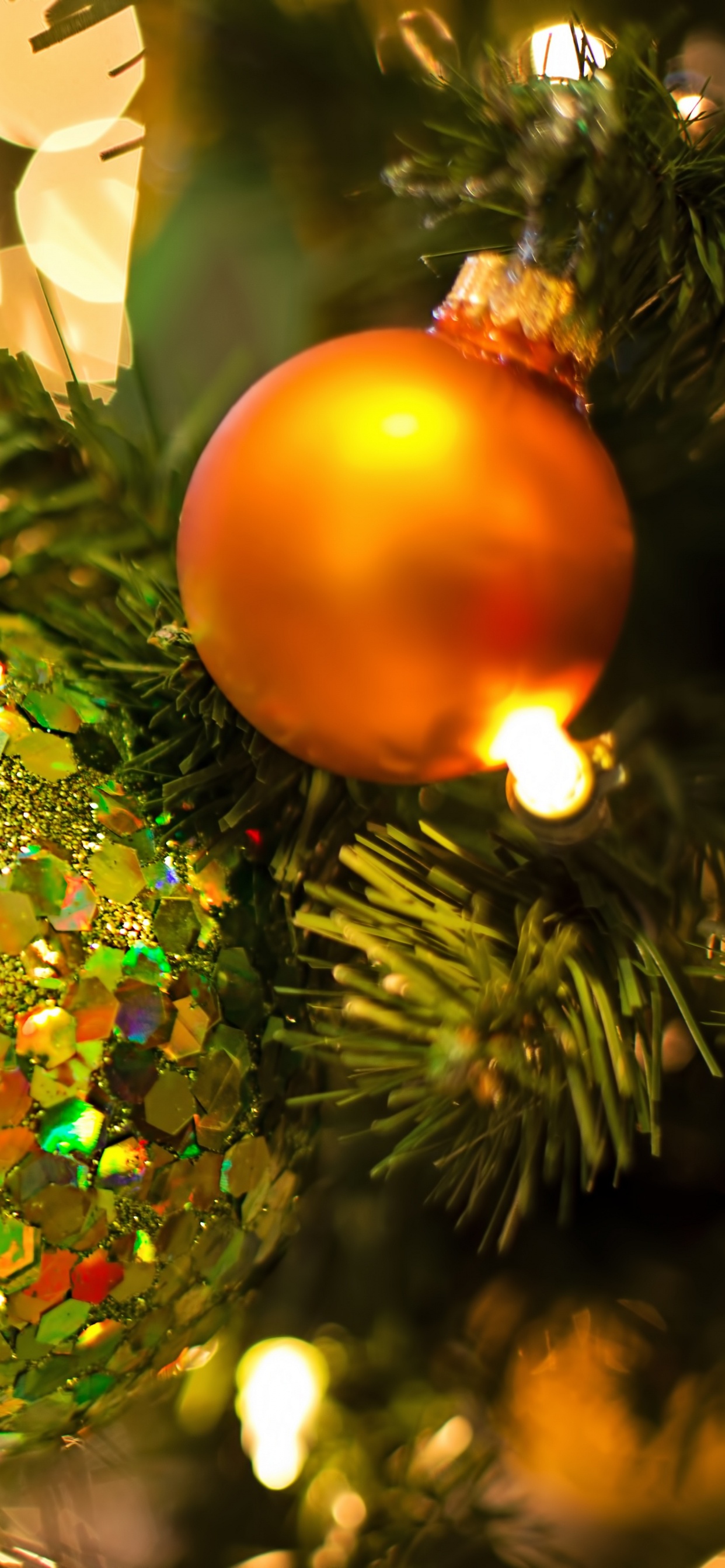 Обои Рождественский день, Рождественские огни, рождественский орнамент, Рождество, дерево для iPhone XS Max, заставка, 1242x2688 картинка