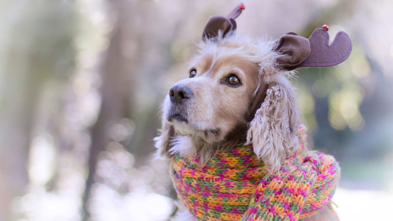 Обои 1366x768 щенок, Кинг Чарльз спаниель, спаниель, собака породы, Рождественский день, HD ready картинка