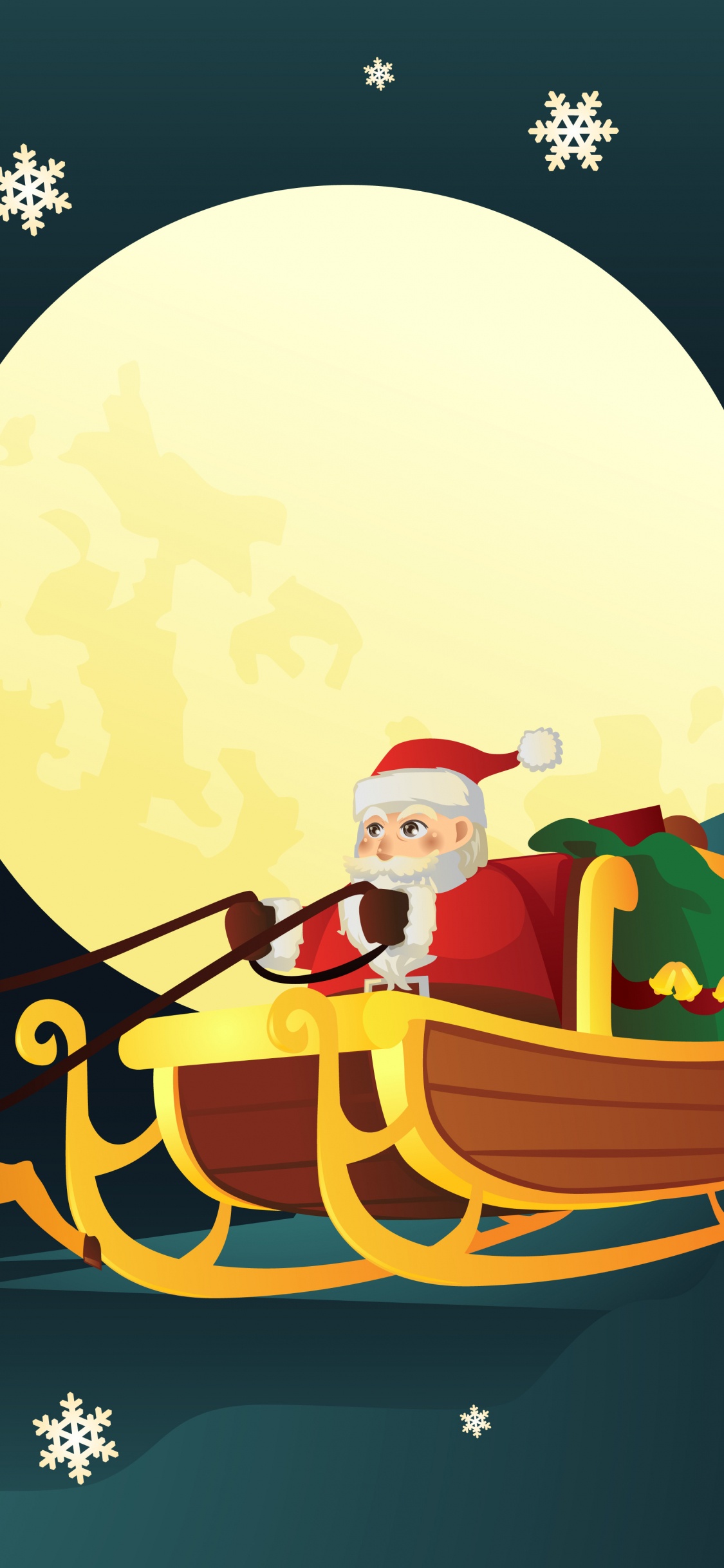 Обои Санта-Клаус, Северный олень, векторная графика, Рождественский день, иллюстрация для iPhone X / XS, заставка, 1125x2436 картинка