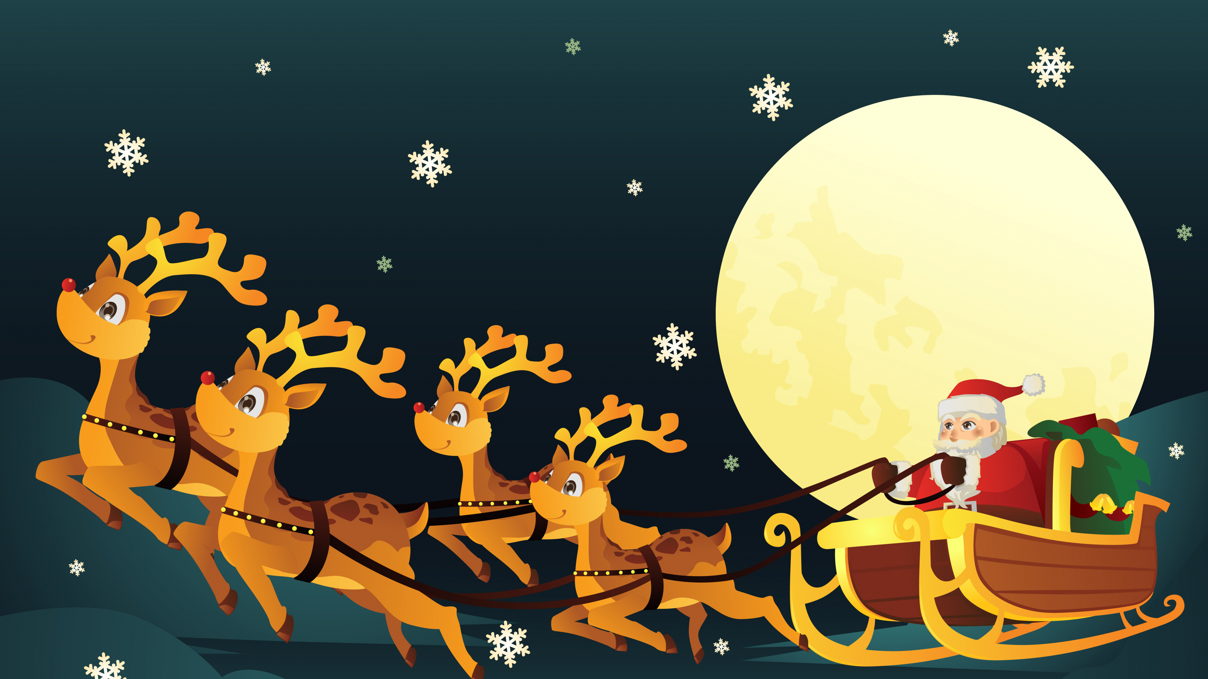 Обои 3840x2160 Санта-Клаус, Северный олень, векторная графика, Рождественский день, иллюстрация, 4K Ultra HD картинка