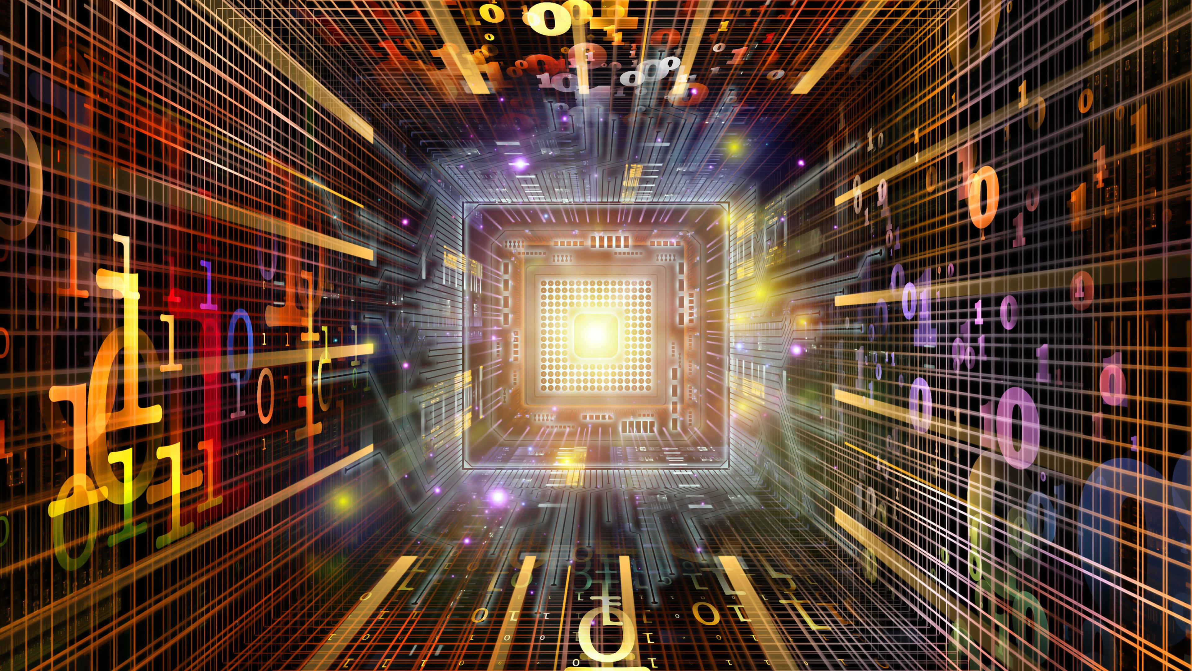 Обои 3840x2160 свет, пурпур, симметрия, дизайн, линия, 4K Ultra HD картинка
