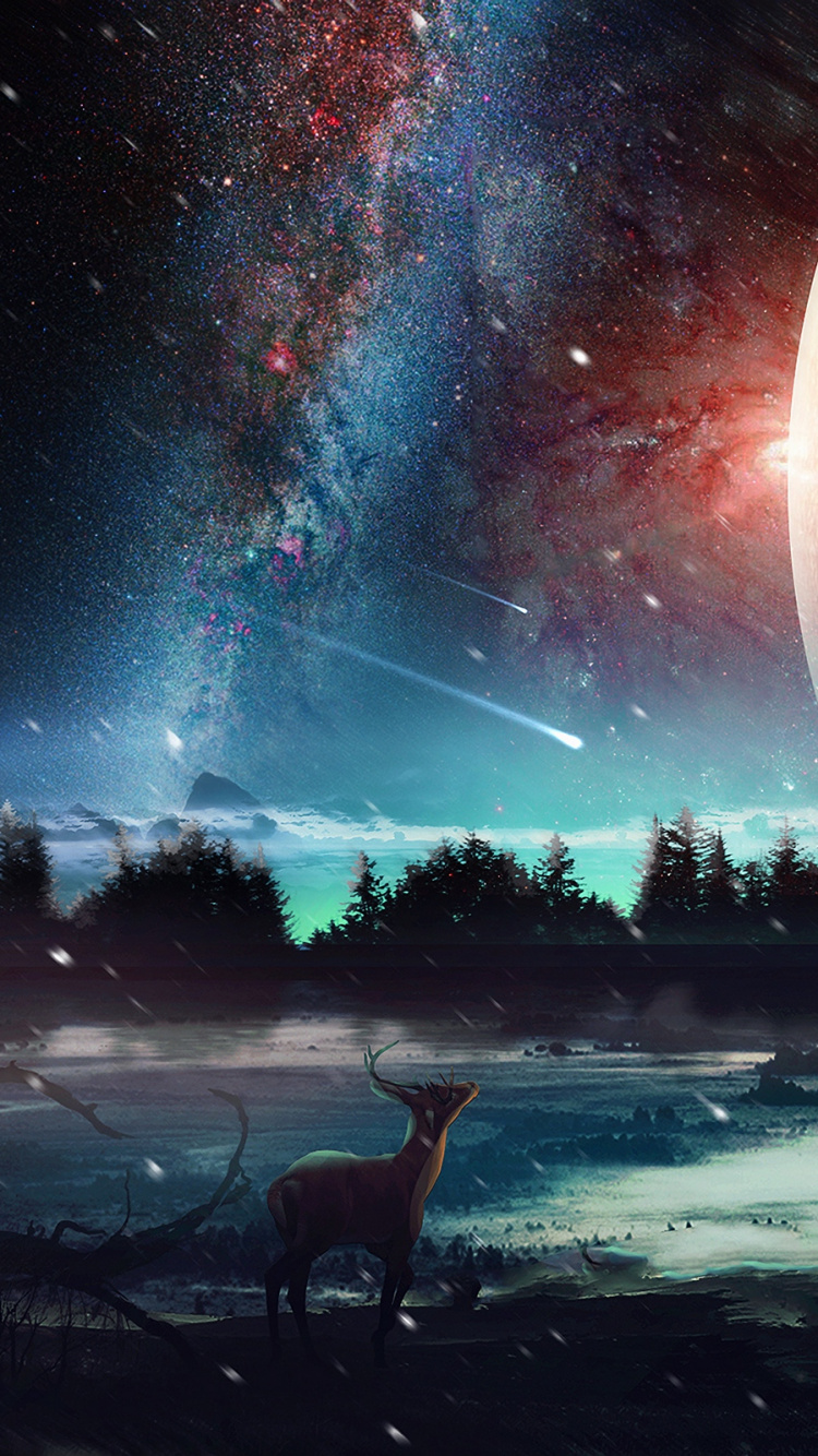 Обои природа, атмосфера, космос, космическое пространство, ночь для iPhone 6, 6S, 7, 8, заставка, 750x1334 картинка