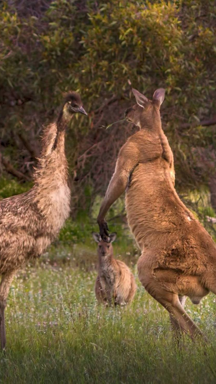 Обои Сумчатые, эму, красный кенгуру, живая природа, наземные животные для iPhone 6, 6S, 7, 8, заставка, 750x1334 картинка