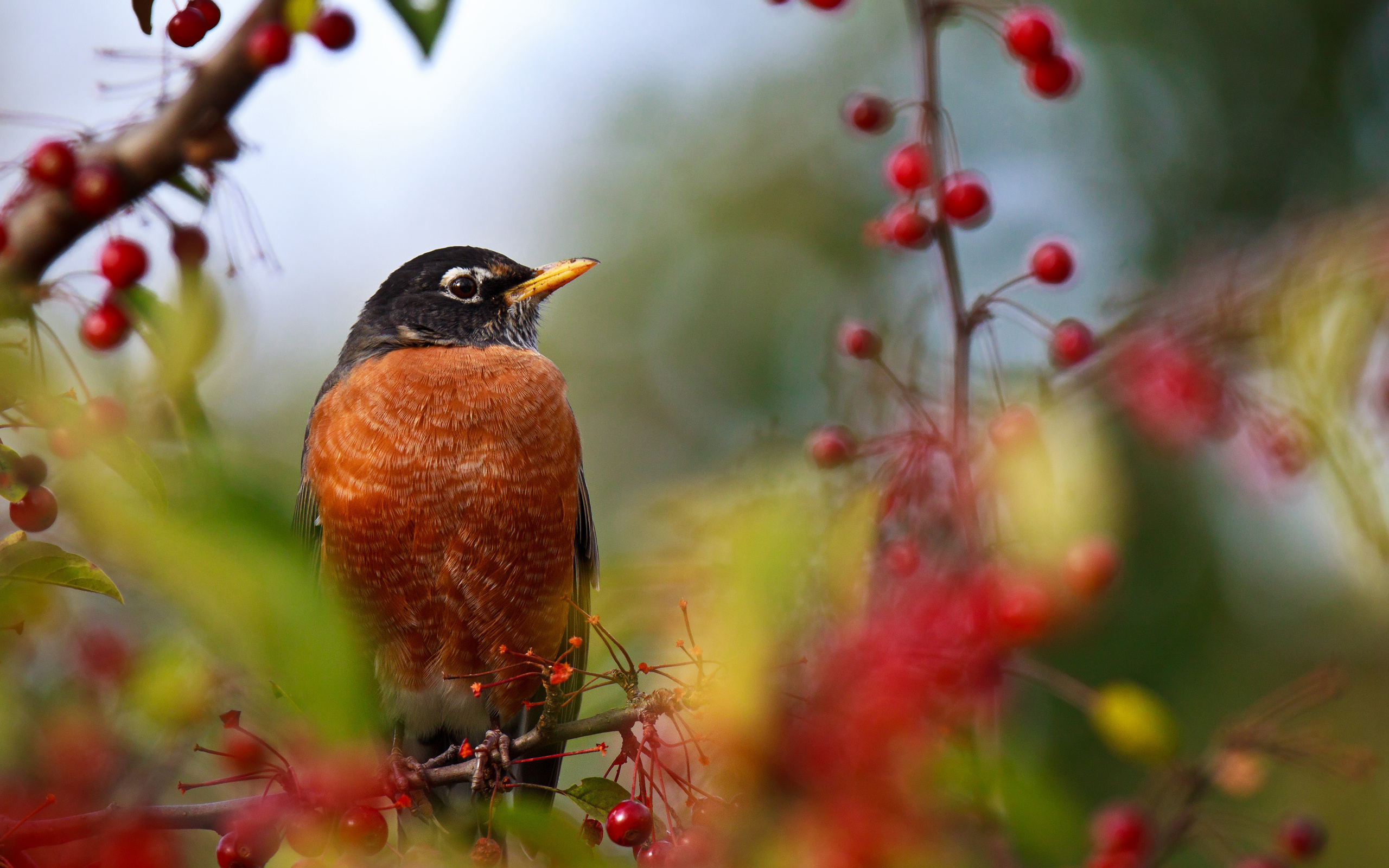 Обои птица, клюв, Робин, мухоловок, попугай, фото, заставка