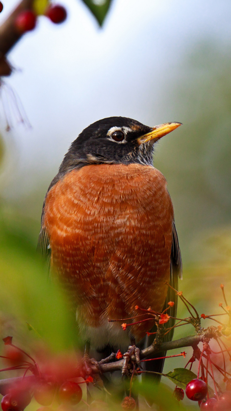 Обои птица, клюв, Робин, мухоловок, попугай для iPhone 6, 6S, 7, 8, заставка, 750x1334 картинка