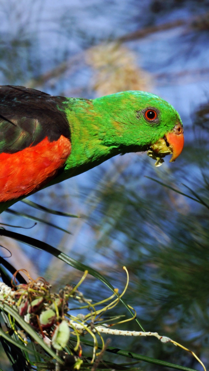 Обои Красный-крылатый попугай, птица, клюв, попугай, лорикет для HD Samsung Galaxy S3/J3/J4/J5, Meizu M5, Sony Xperia L1/L2, заставка, 720x1280 картинка
