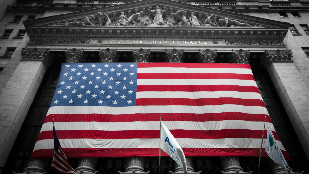 Обои 1280x720 фондовая биржа, запас, обмен, флаг, флаг Соединенных Штатов, HD, HDV, 720p, 16:9 картинка