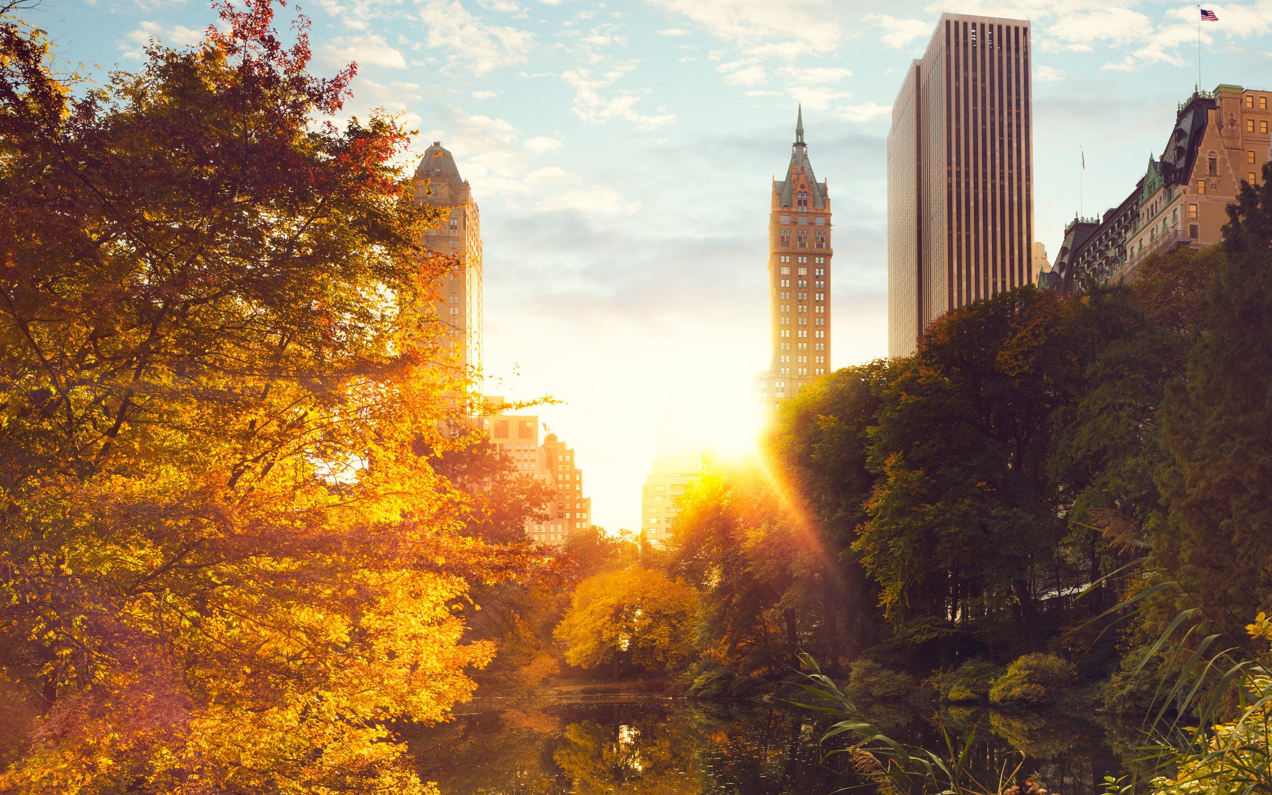 Обои дерево, солнечный свет, город, небоскреб, природа, фото, заставка