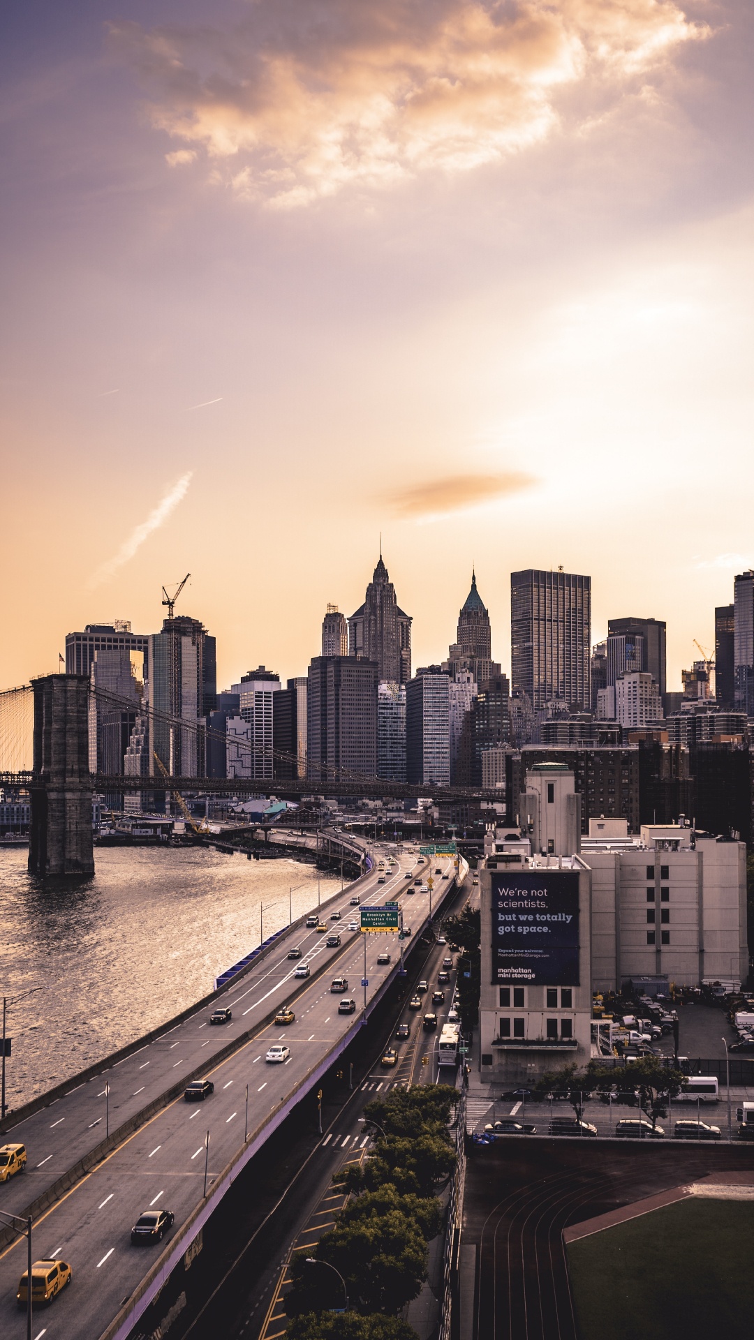 Обои Бруклинский мост, манхэттенский мост, городской пейзаж, город, городской район для iPhone 6S+/7+/8+, заставка, 1080x1920 картинка