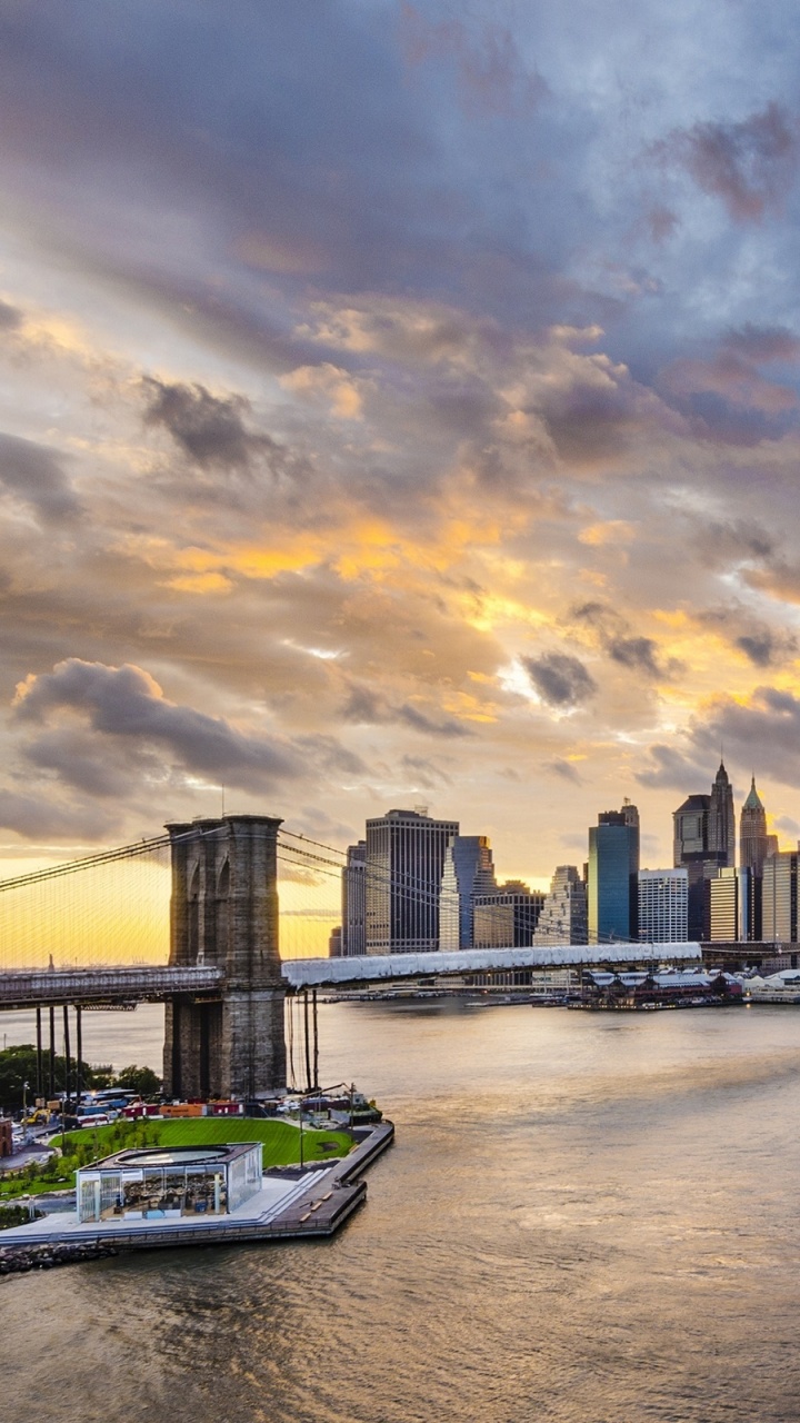 Обои Бруклинский мост, манхэттенский мост, городской пейзаж, город, линия горизонта для HD Samsung Galaxy S3/J3/J4/J5, Meizu M5, Sony Xperia L1/L2, заставка, 720x1280 картинка