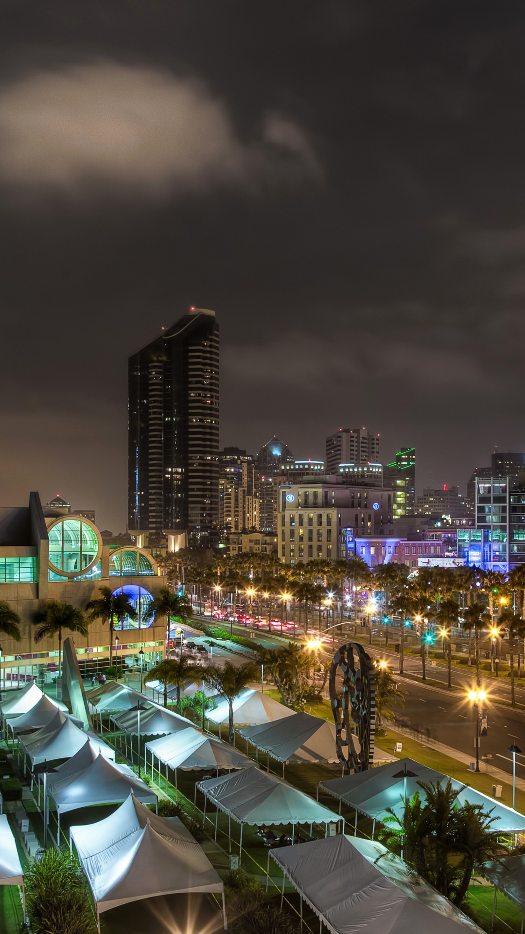 Обои Сан Диего, ночь, здание, городской пейзаж, город на телефон Android, 1080x1920 Full HD картинки