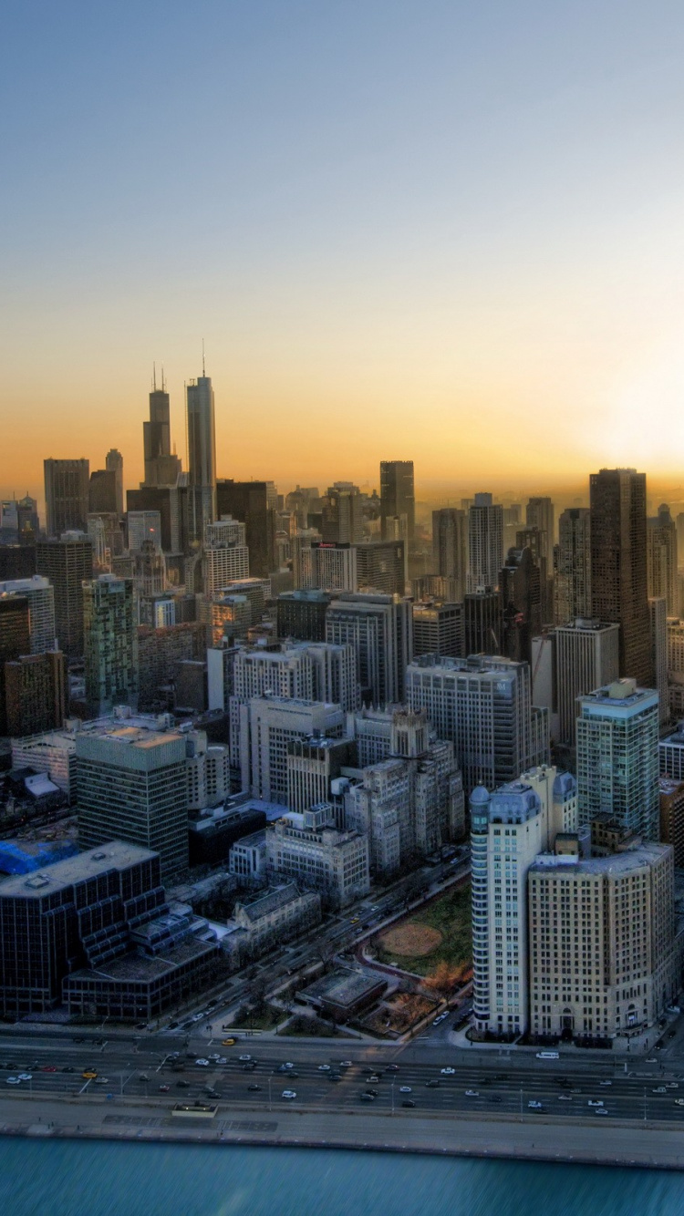 Обои Чикаго, городской пейзаж, город, городской район, линия горизонта для iPhone 6, 6S, 7, 8, заставка, 750x1334 картинка