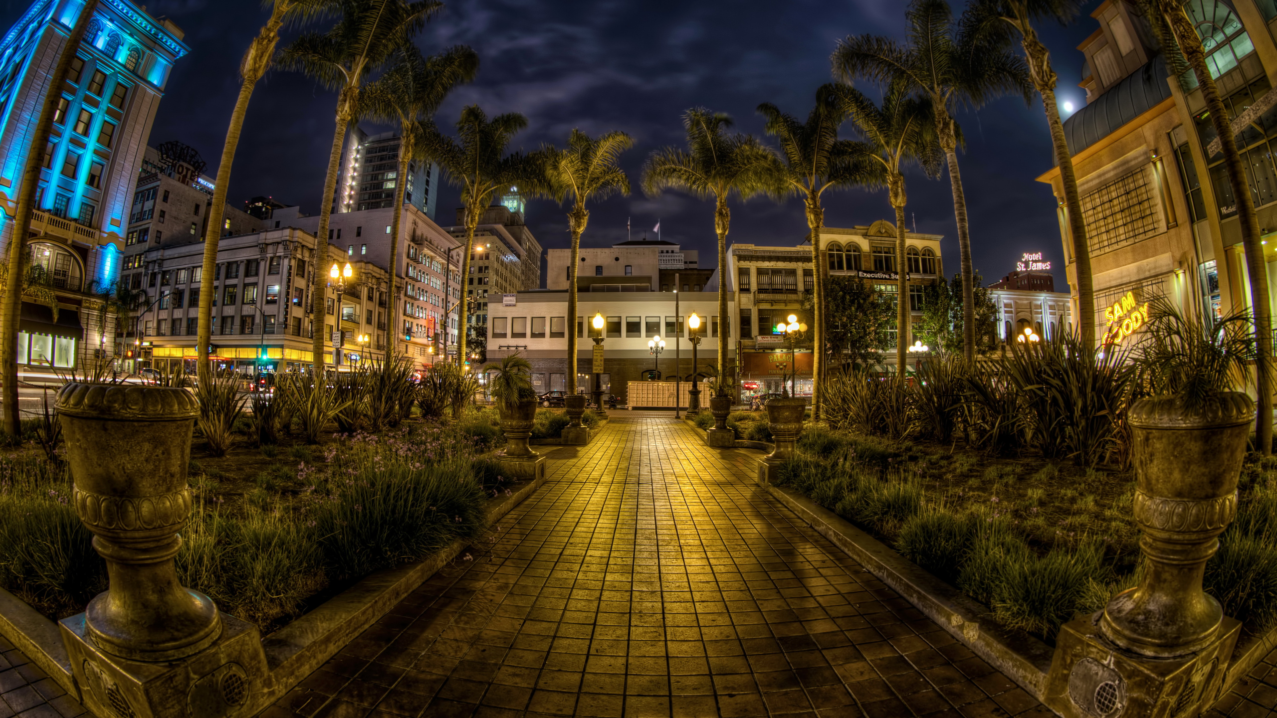 Обои 2560x1440 Сан Диего, ночь, объектив fisheye, архитектура, освещение, WQHD, QHD, 16:9 картинка