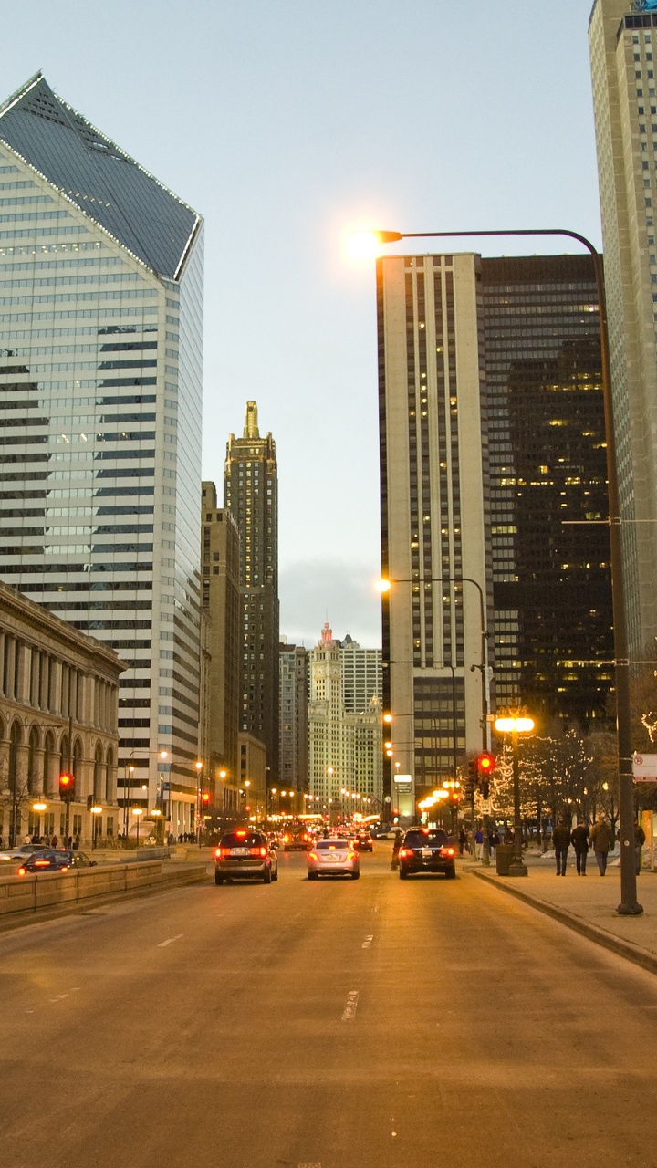 Обои Чикаго здания, небоскреб, здание, город, городской район для HD Samsung Galaxy S3/J3/J4/J5, Meizu M5, Sony Xperia L1/L2, заставка, 720x1280 картинка