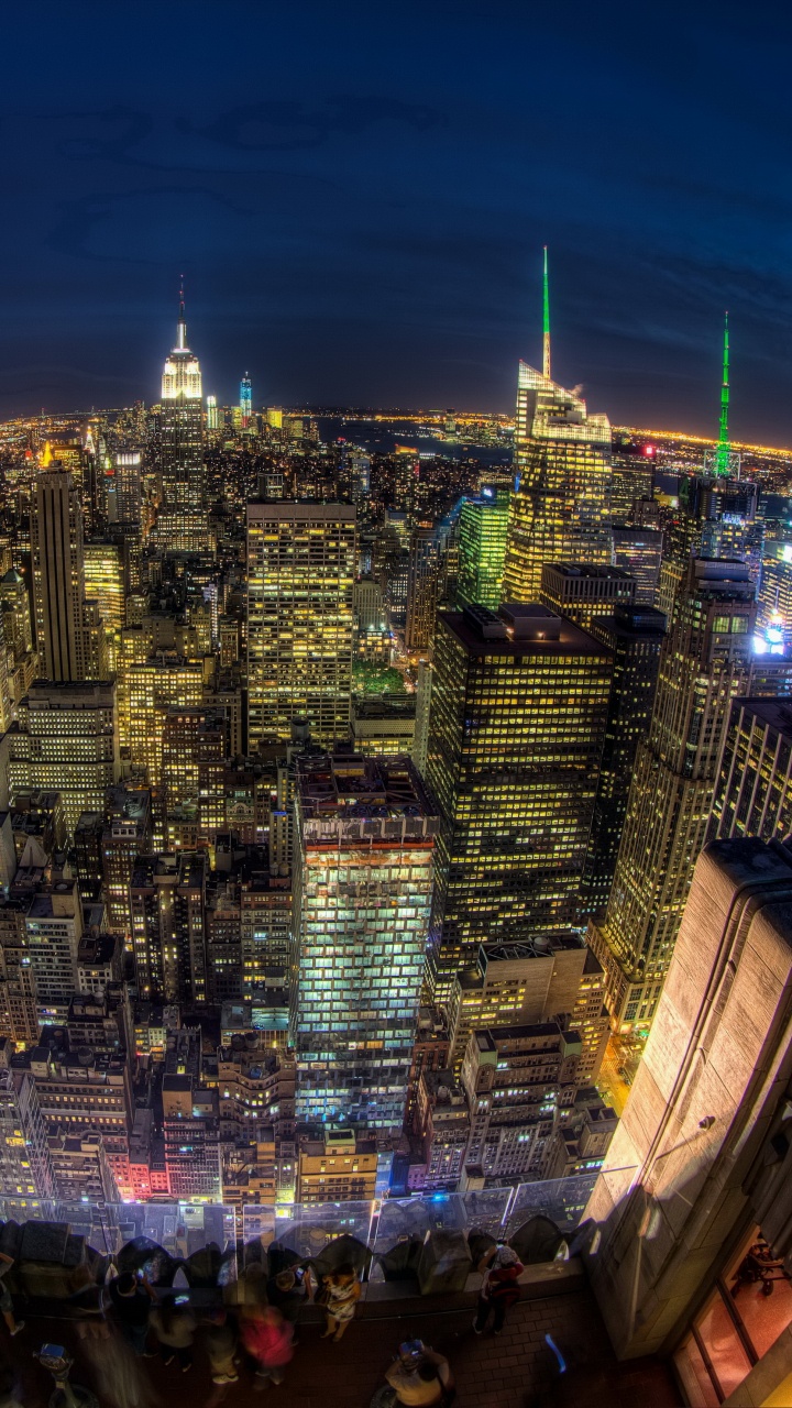 Обои Нью-Йорк, Вершина скалы, ночь, ориентир, городской пейзаж для HD Samsung Galaxy S3/J3/J4/J5, Meizu M5, Sony Xperia L1/L2, заставка, 720x1280 картинка