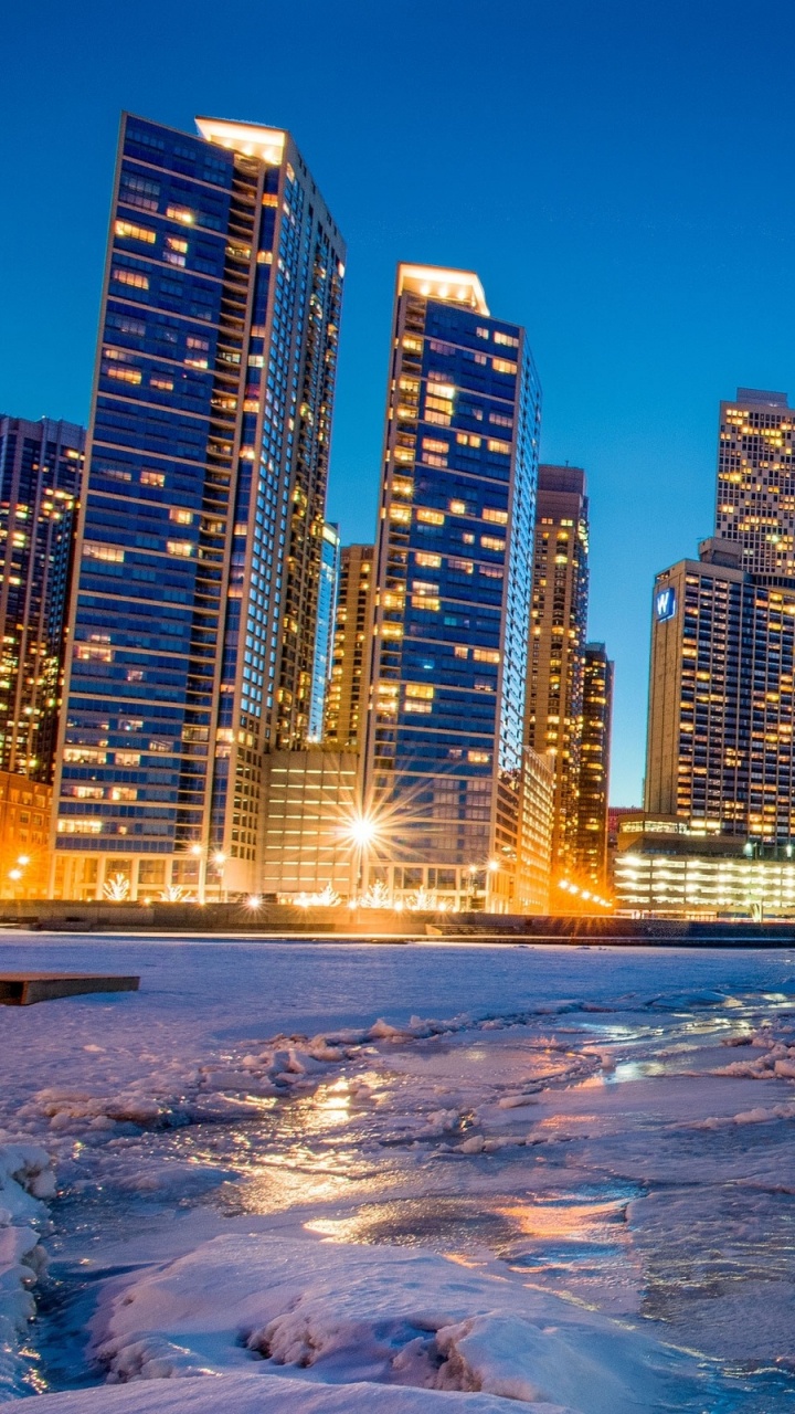 Обои зима, город, городской пейзаж, линия горизонта, небоскреб для HD Samsung Galaxy S3/J3/J4/J5, Meizu M5, Sony Xperia L1/L2, заставка, 720x1280 картинка