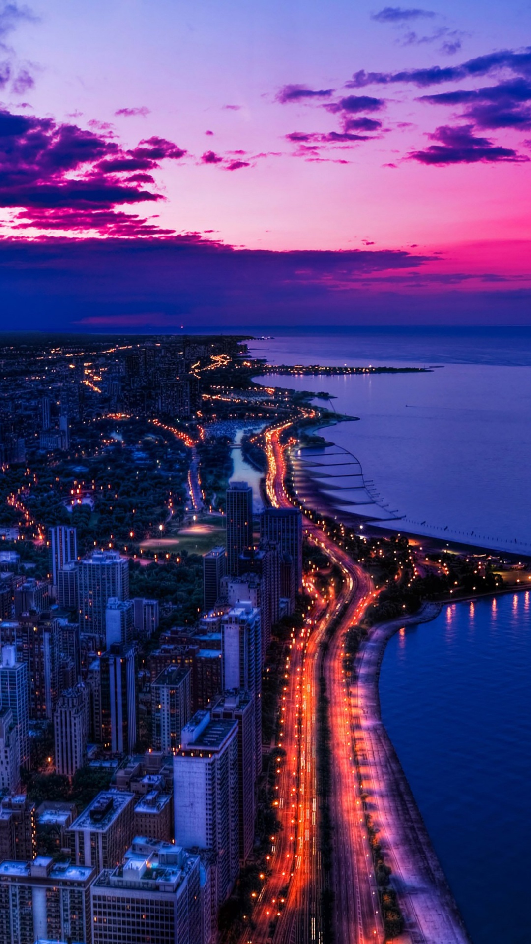 Обои городской пейзаж, город, сумрак, горизонт, метрополия на телефон Android, 1080x1920 Full HD картинки