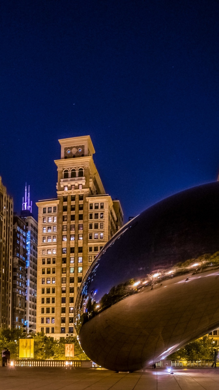 Обои Облачные ворота, город, ориентир, городской пейзаж, ночь для HD Samsung Galaxy S3/J3/J4/J5, Meizu M5, Sony Xperia L1/L2, заставка, 720x1280 картинка