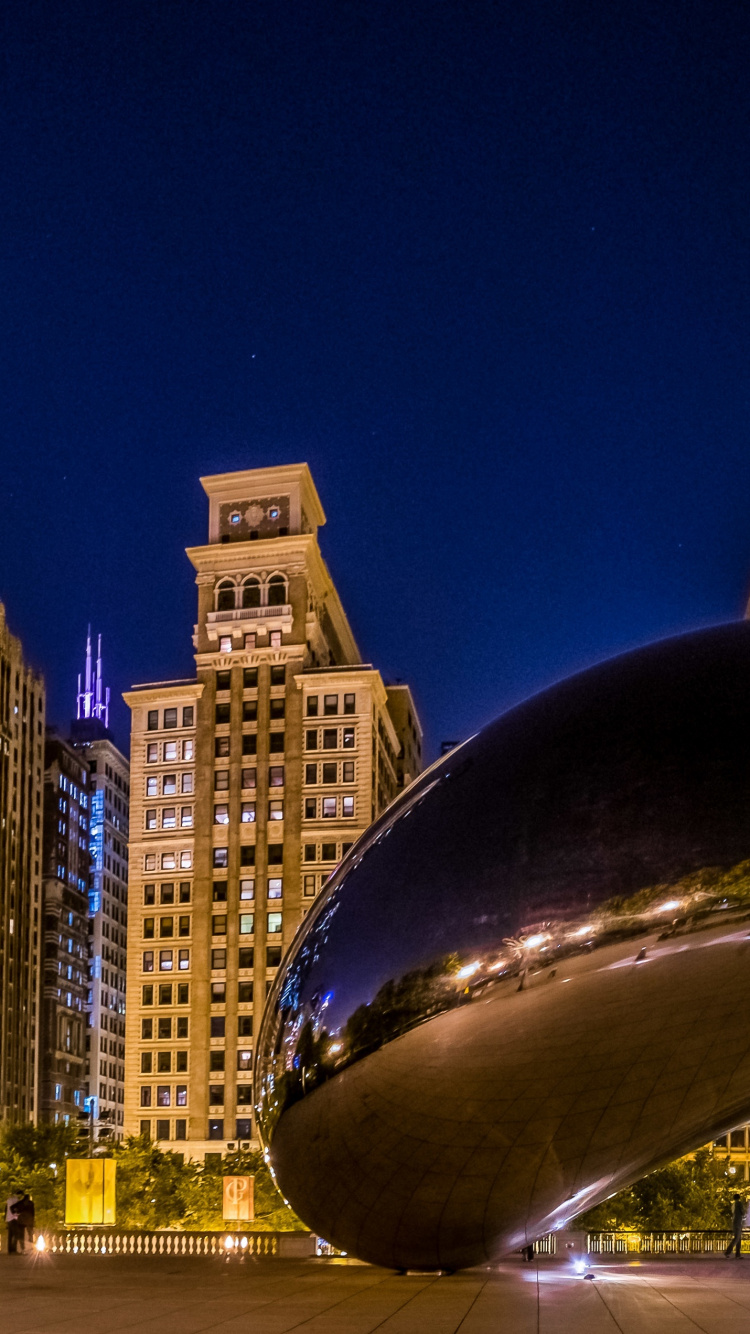Обои Облачные ворота, город, ориентир, городской пейзаж, ночь для iPhone 6, 6S, 7, 8, заставка, 750x1334 картинка