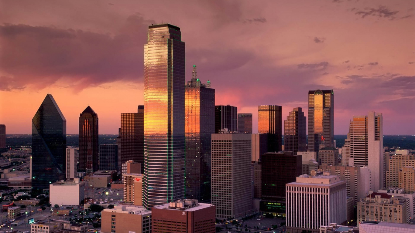 Обои 1366x768 Центр Города Даллас, форт-Уэрт, городской пейзаж, город, метрополия, HD ready картинка