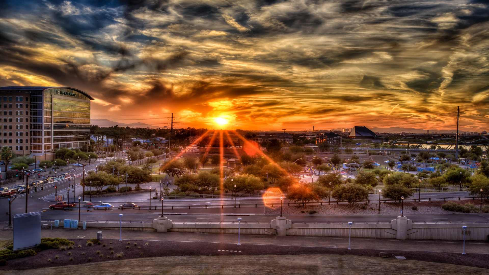 Обои 1920x1080 Темпе, закат, здание, Хаус, облако, Full HD, HDTV, 1080p 16:9 картинка