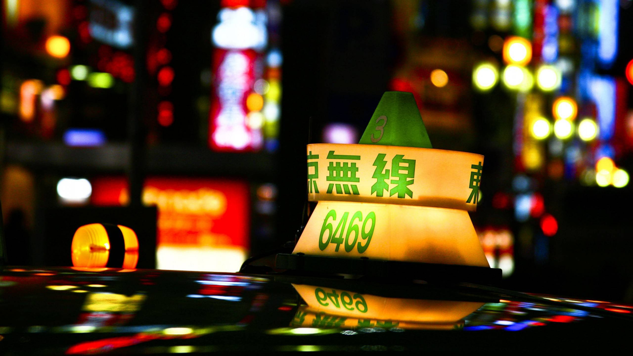 Обои 1280x720 ночь, освещение, такси, Отель Элитного Расположения Oyasumi, Япония, HD, HDV, 720p, 16:9 картинка