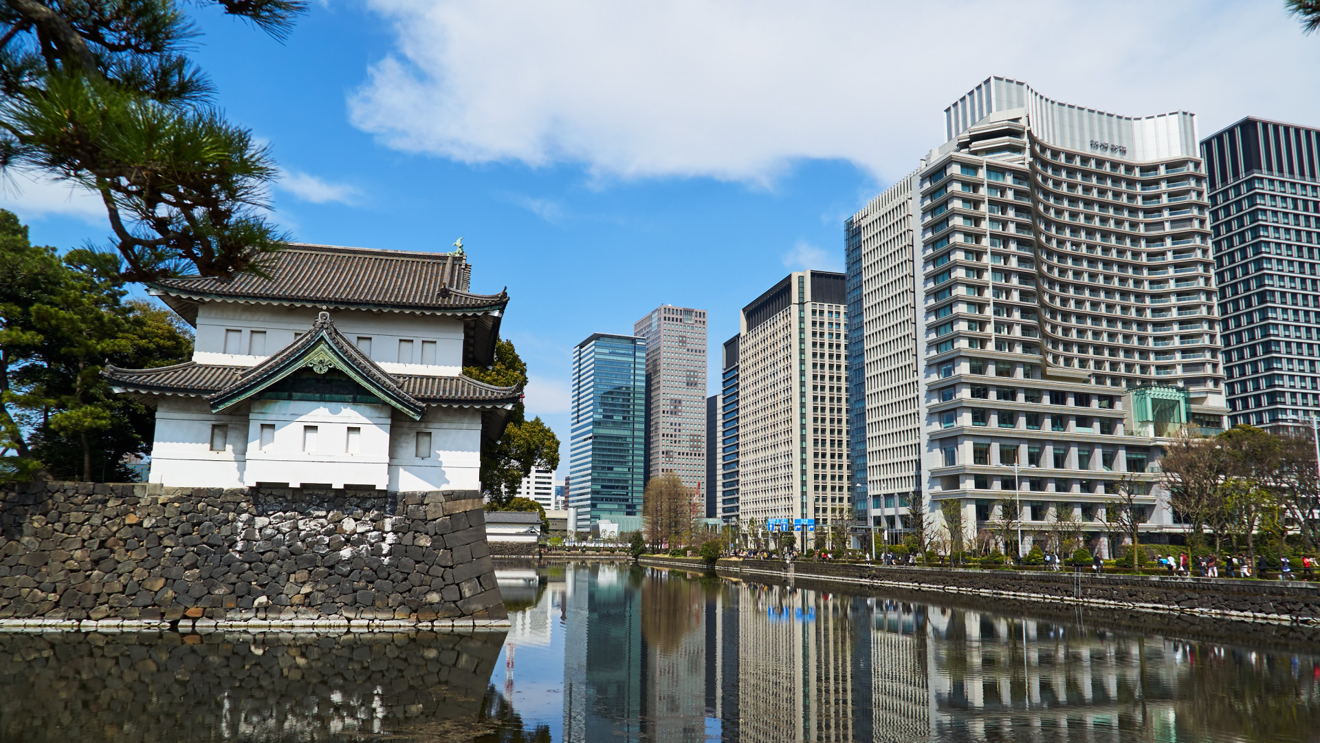Обои 1920x1080 Императорский Дворец В Токио, фасад, здание, архитектура, водный путь, Full HD, HDTV, 1080p 16:9 картинка