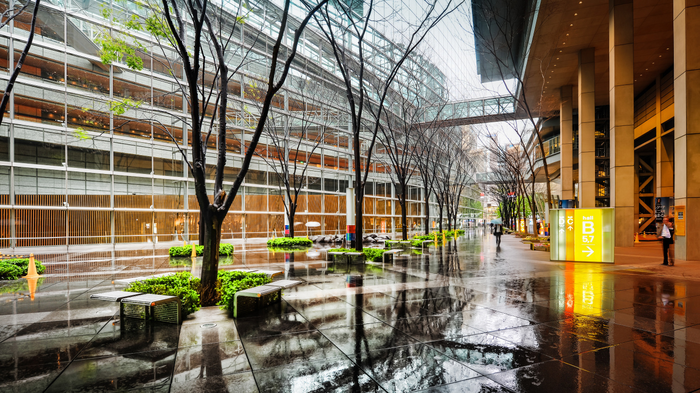 Обои 1366x768 отражение, архитектура, здание, городской район, дерево, HD ready картинка