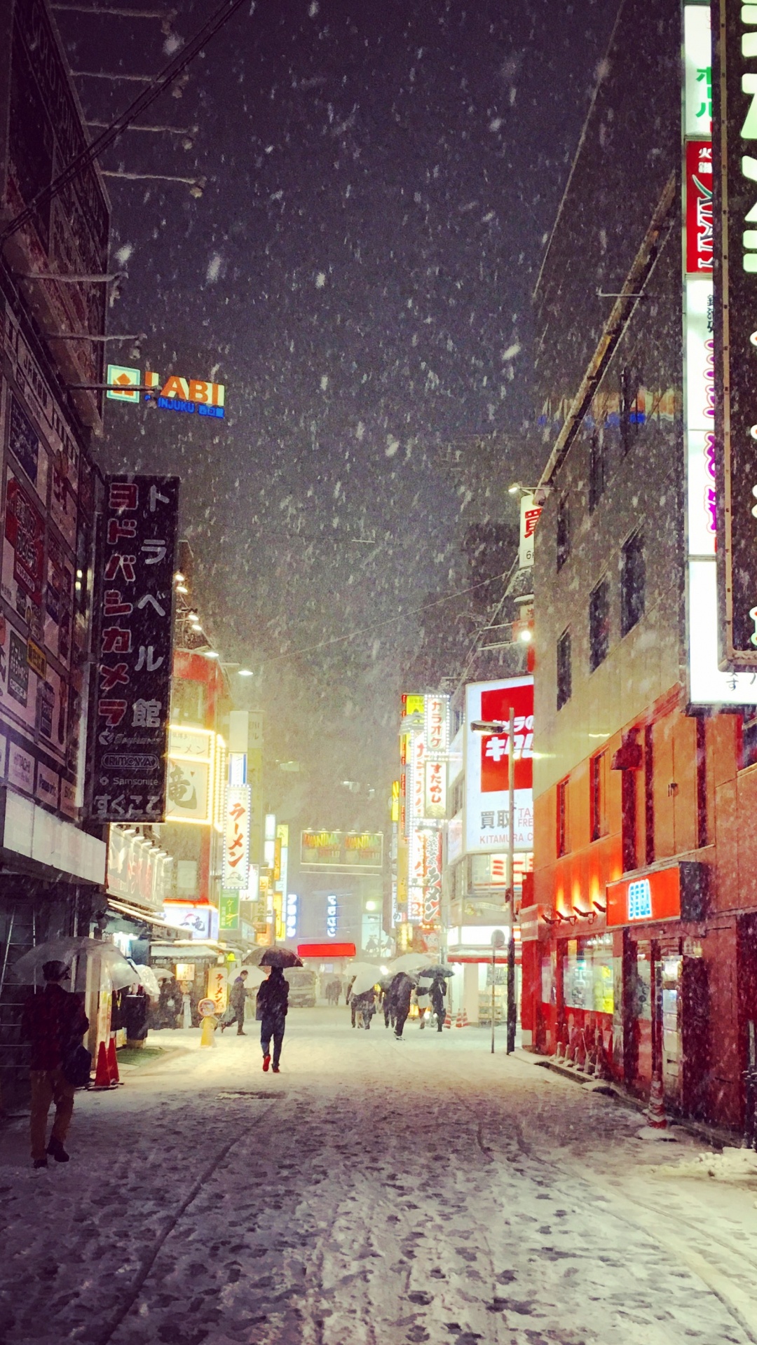 Обои город, ночь, улица, городской район, снег на телефон Android, 1080x1920 Full HD картинки