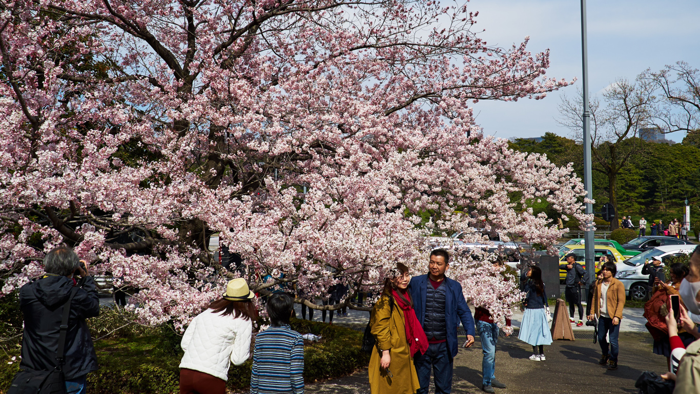 Обои 1366x768 цветение вишни, цветок, дерево, расцвет, весна, HD ready картинка