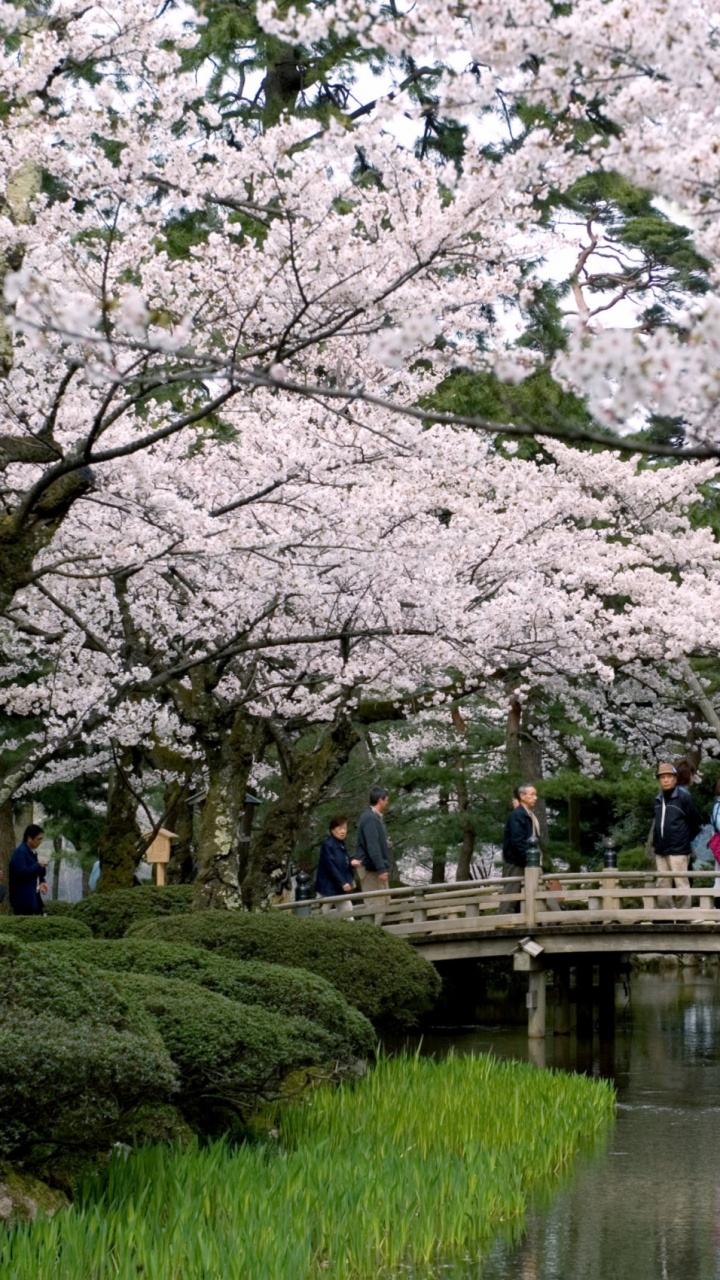 Обои Кэнроку-эн, Трех великих садов Японии, цветение вишни, японский сад, цветок для HD Samsung Galaxy S3/J3/J4/J5, Meizu M5, Sony Xperia L1/L2, заставка, 720x1280 картинка