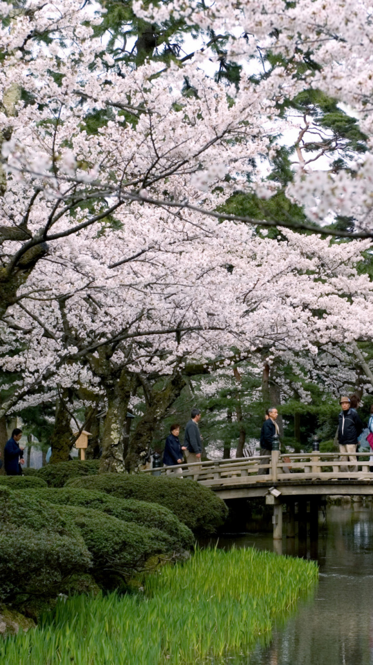 Обои Кэнроку-эн, Трех великих садов Японии, цветение вишни, японский сад, цветок для iPhone 6, 6S, 7, 8, заставка, 750x1334 картинка