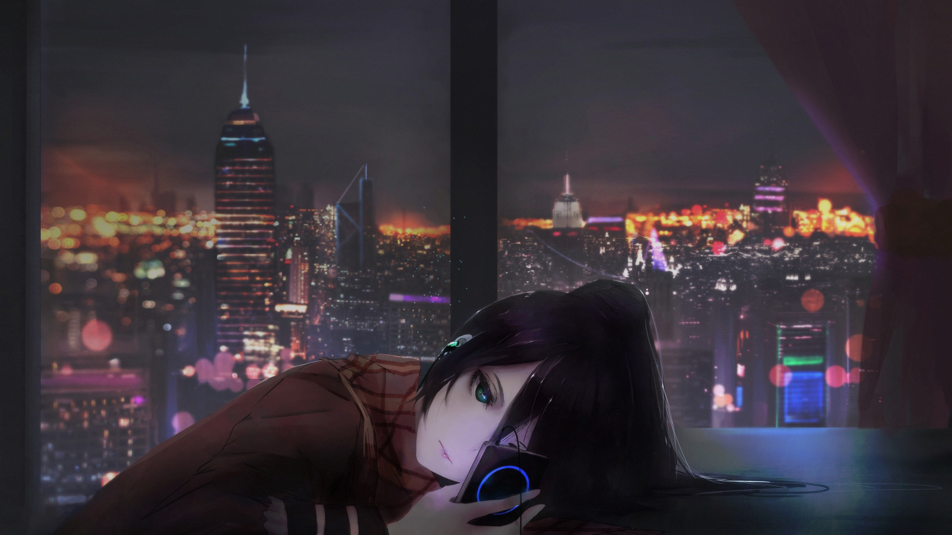 Обои 1920x1080 аниме, арт, город, ночь, темнота, Full HD, HDTV, 1080p 16:9 картинка