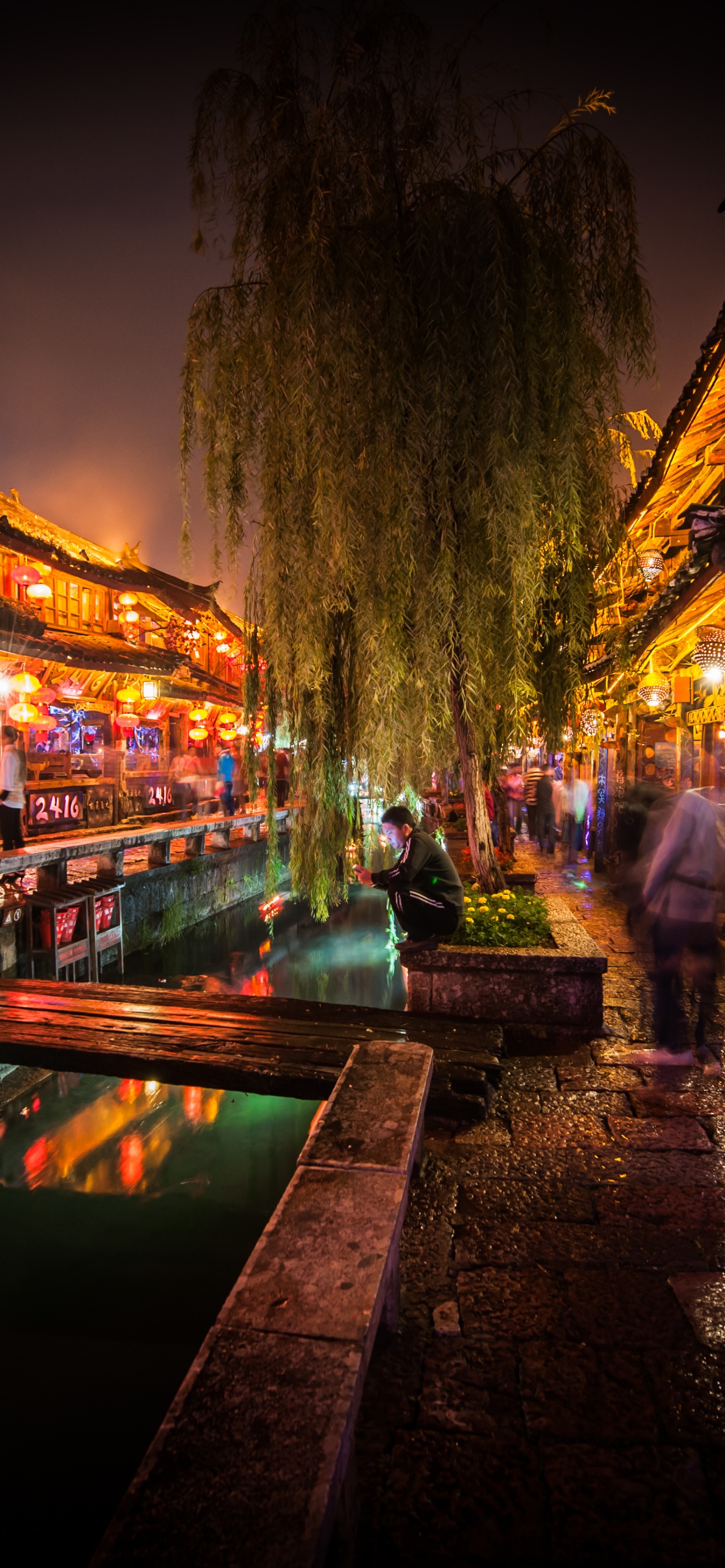 Обои Старый город Лицзян, ночь, улица, город, темнота для iPhone XS Max, заставка, 1242x2688 картинка