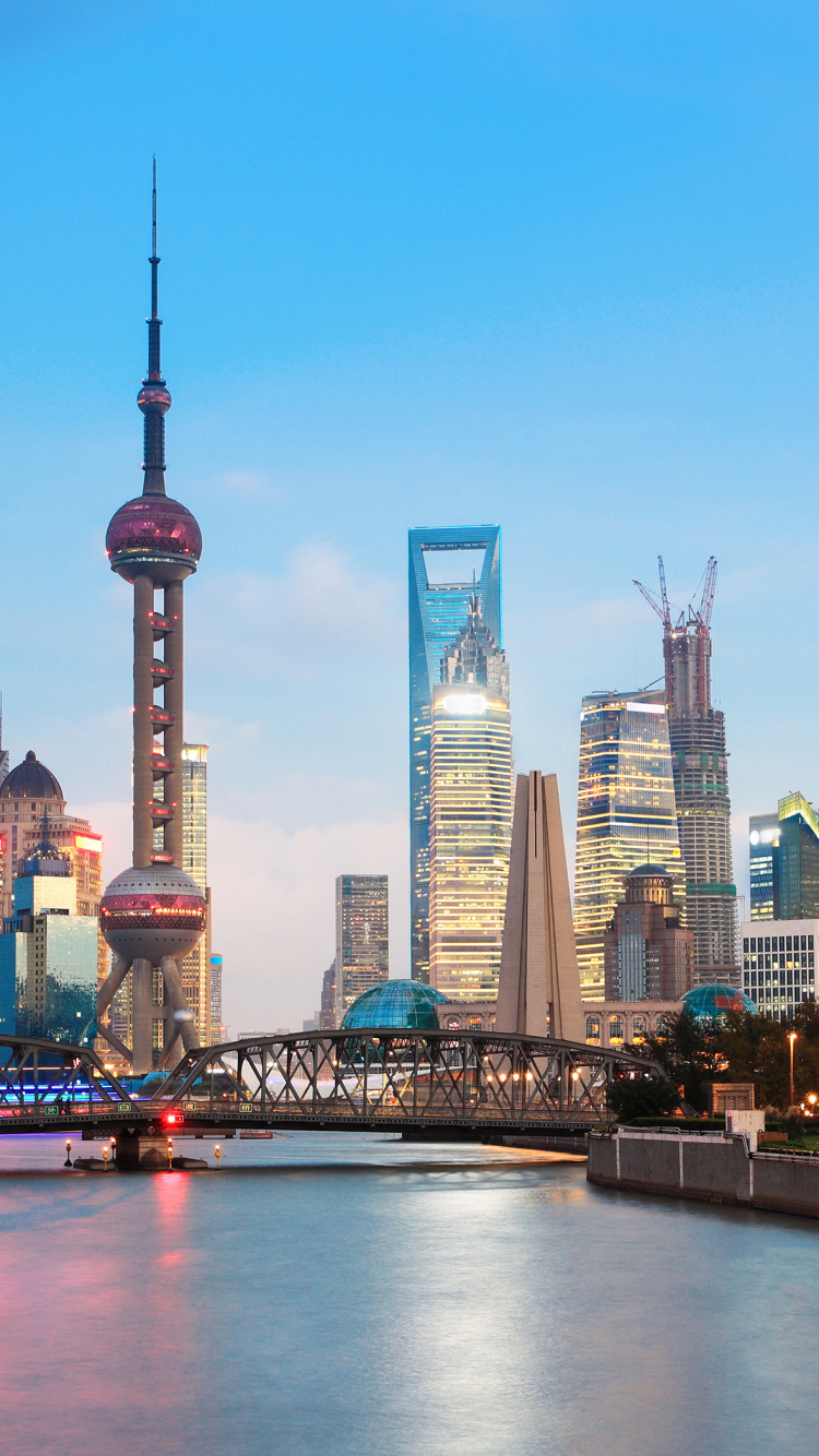 Обои район пудун, линия горизонта, набережная, город, городской пейзаж для iPhone 6, 6S, 7, 8, заставка, 750x1334 картинка