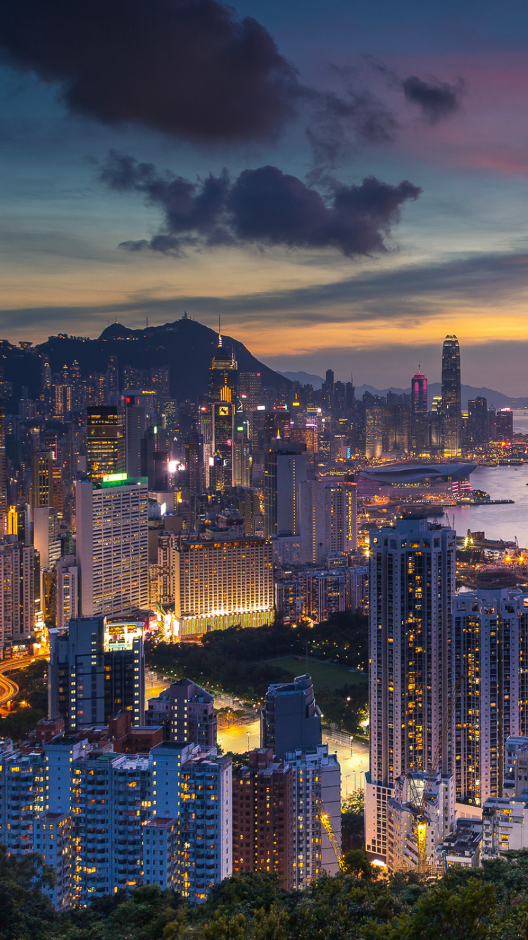 Обои Гавань Виктория, Сентрал, город, городской пейзаж, городской район для iPhone 6, 6S, 7, 8, заставка, 750x1334 картинка
