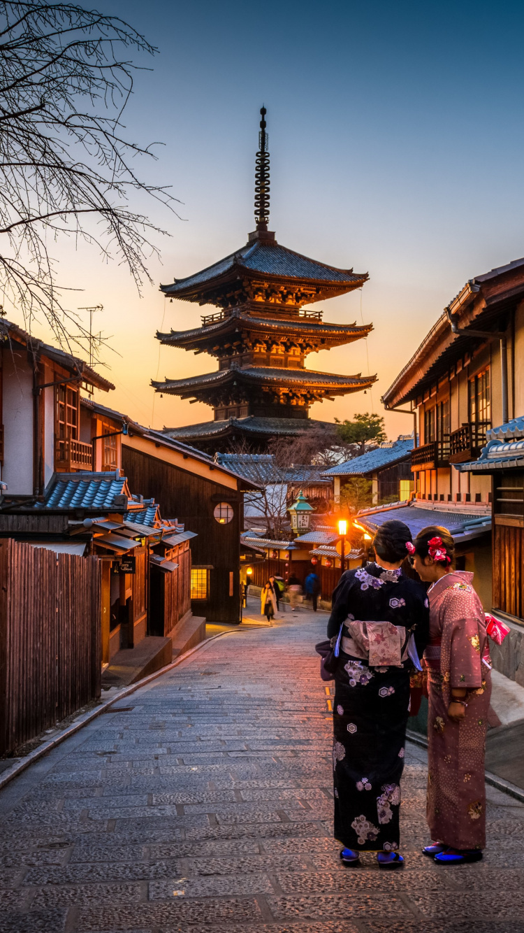 Обои китайская архитектура, городок, утро, Ясака, Фусими Инари-Тайся для iPhone 6, 6S, 7, 8, заставка, 750x1334 картинка