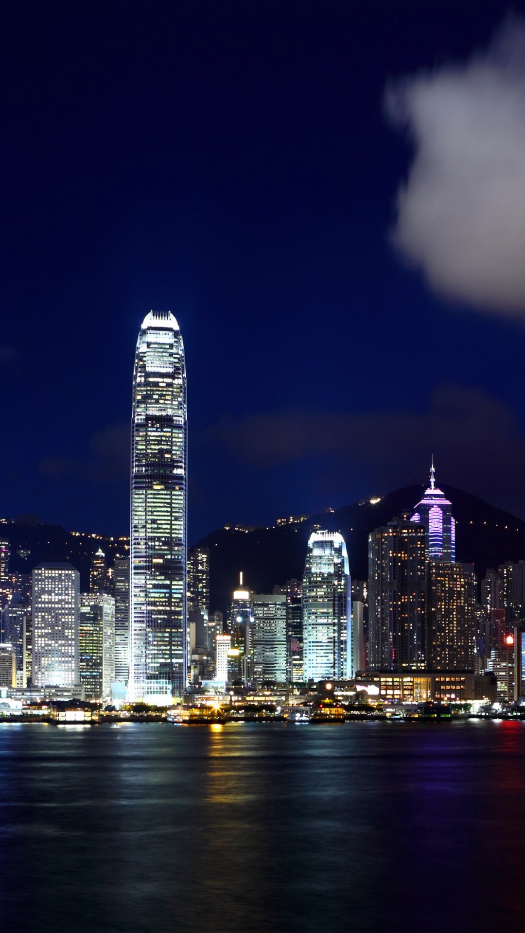 Обои Гавань Виктория, небоскреб, ночь, городской пейзаж, город для iPhone 6S+/7+/8+, заставка, 1080x1920 картинка