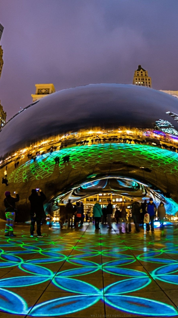 Обои парк тысячелетия, Облачные ворота, ориентир, город, ночь для iPhone 6, 6S, 7, 8, заставка, 750x1334 картинка