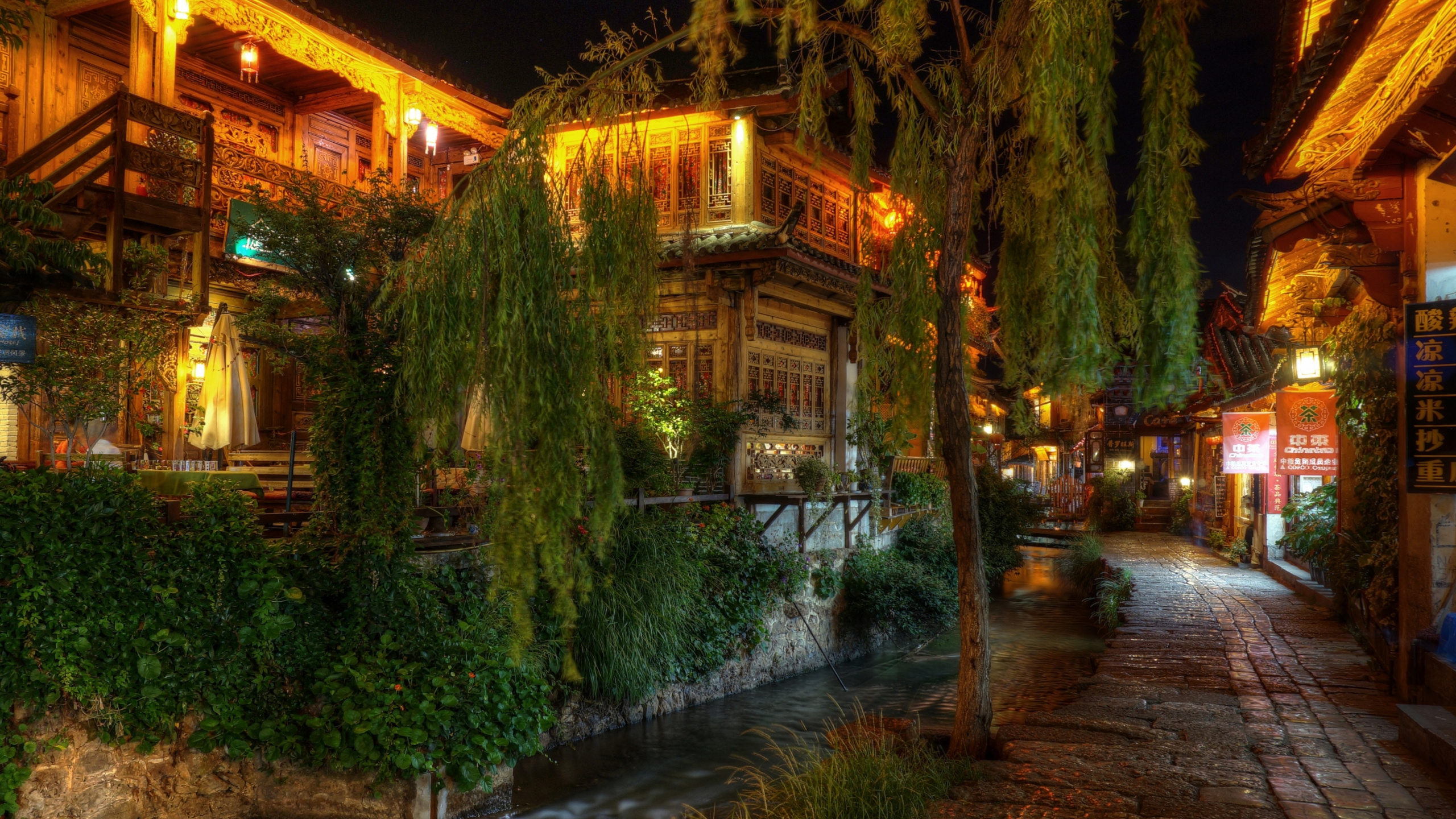 Обои 2560x1440 Лиджанга, ночь, освещение, улица, дерево, WQHD, QHD, 16:9 картинка