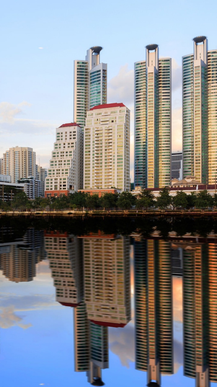 Обои город, городской пейзаж, отражение, метрополия, линия горизонта для HD Samsung Galaxy S3/J3/J4/J5, Meizu M5, Sony Xperia L1/L2, заставка, 720x1280 картинка