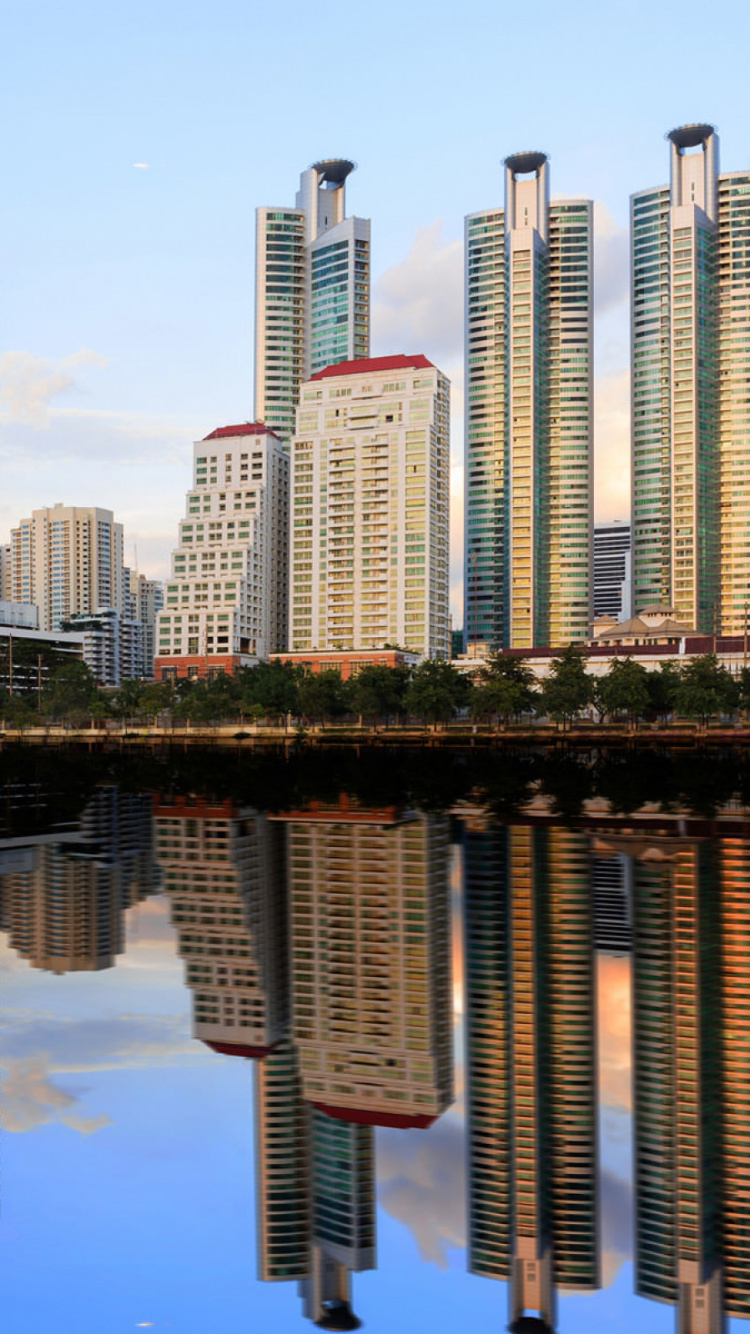 Обои город, городской пейзаж, отражение, метрополия, линия горизонта для iPhone 6, 6S, 7, 8, заставка, 750x1334 картинка