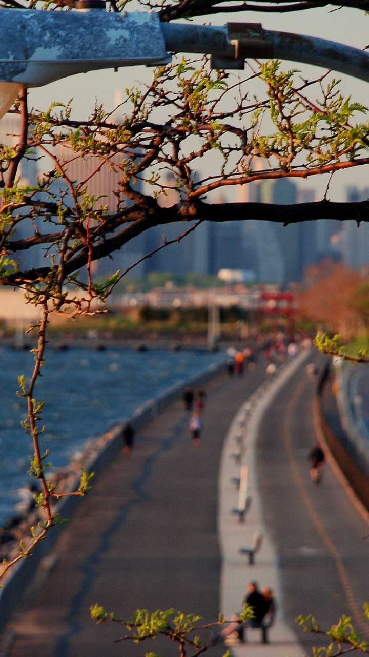 Обои город, дерево, ветвь, лист, городской район для HD Samsung Galaxy S3/J3/J4/J5, Meizu M5, Sony Xperia L1/L2, заставка, 720x1280 картинка