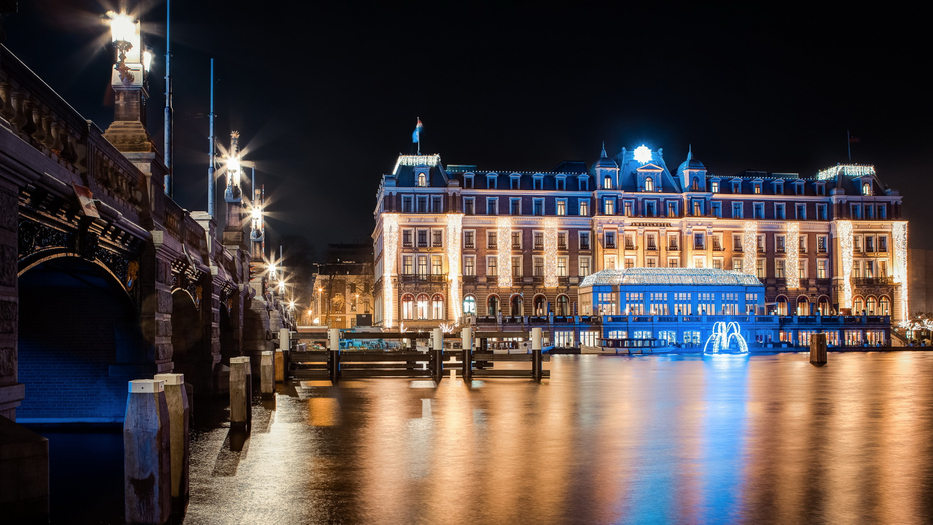 Обои 1920x1080 ночь, ориентир, отражение, свет, город, Full HD, HDTV, 1080p 16:9 картинка