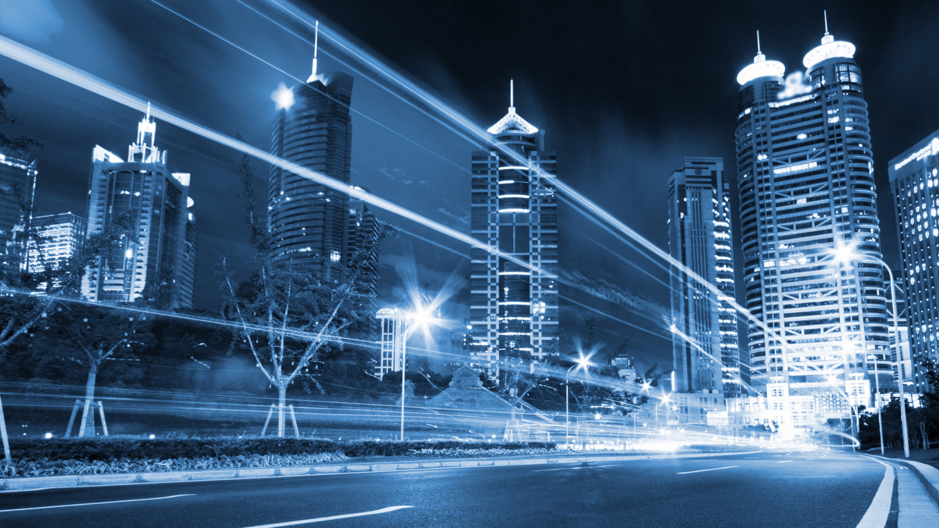 Обои 1366x768 небоскреб, ночь, метрополия, город, городской район, HD ready картинка