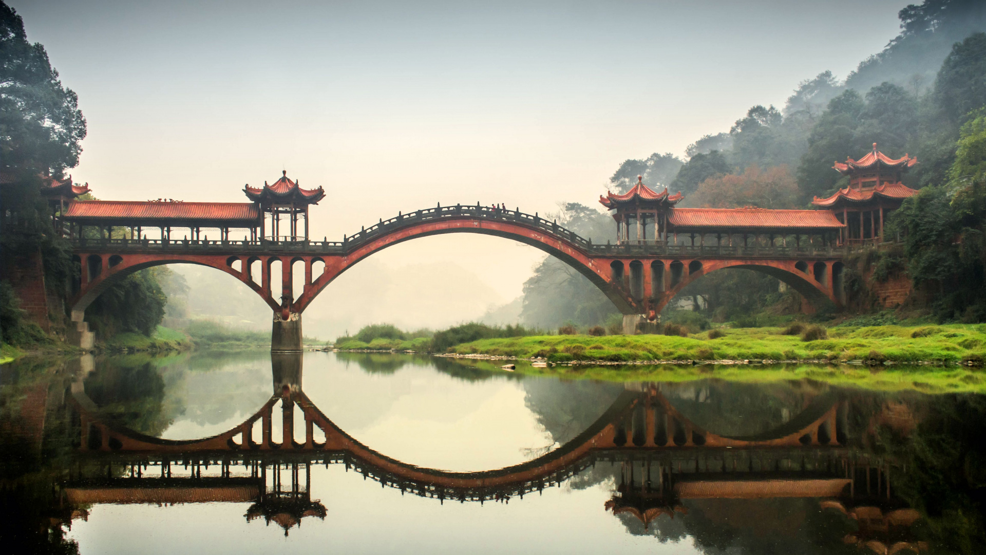 Обои 1920x1080 Лэшань Гигантский Будда, отражение, природа, мост, арочный мостик, Full HD, HDTV, 1080p 16:9 картинка