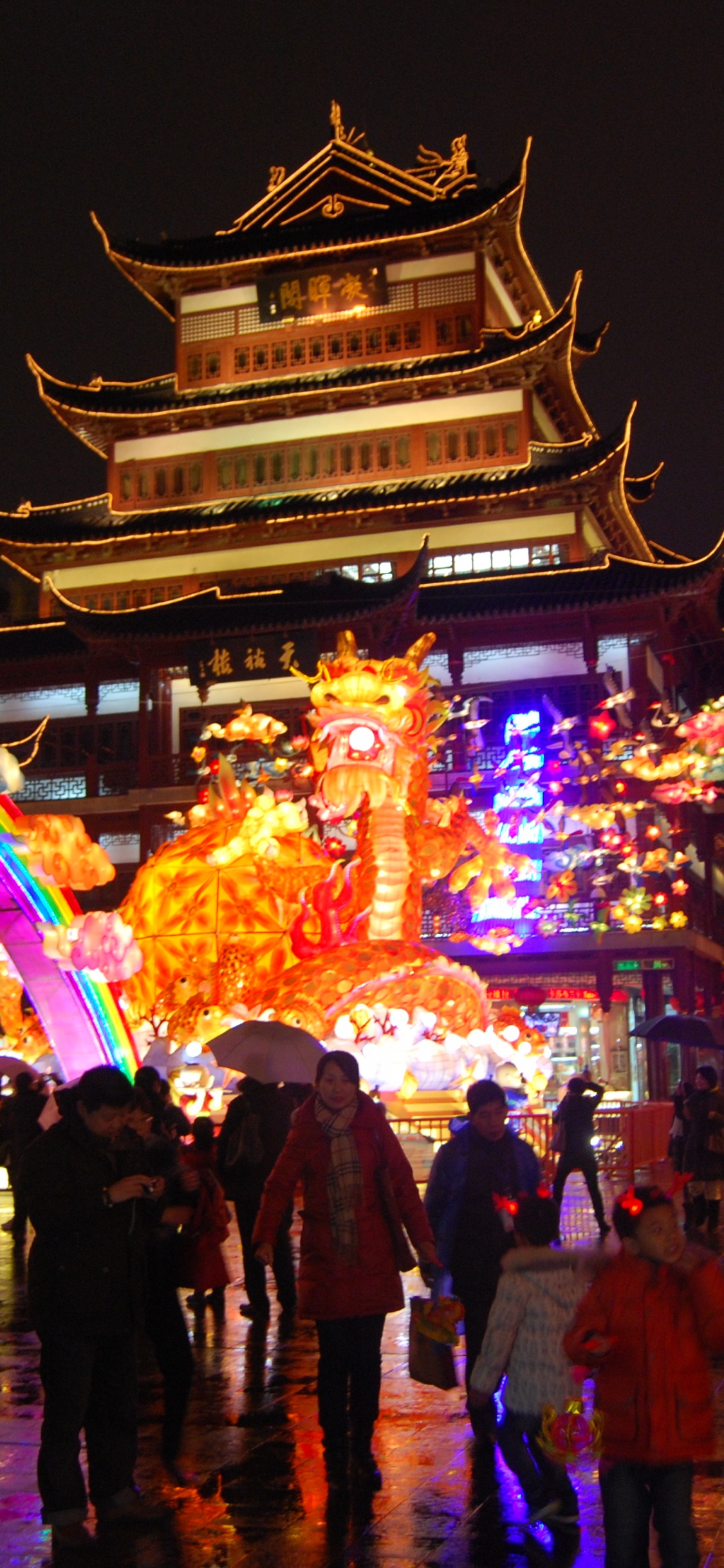 Обои Город Бога храм Шанхая, Ю Сад, город, освещение, ориентир для iPhone X / XS, заставка, 1125x2436 картинка