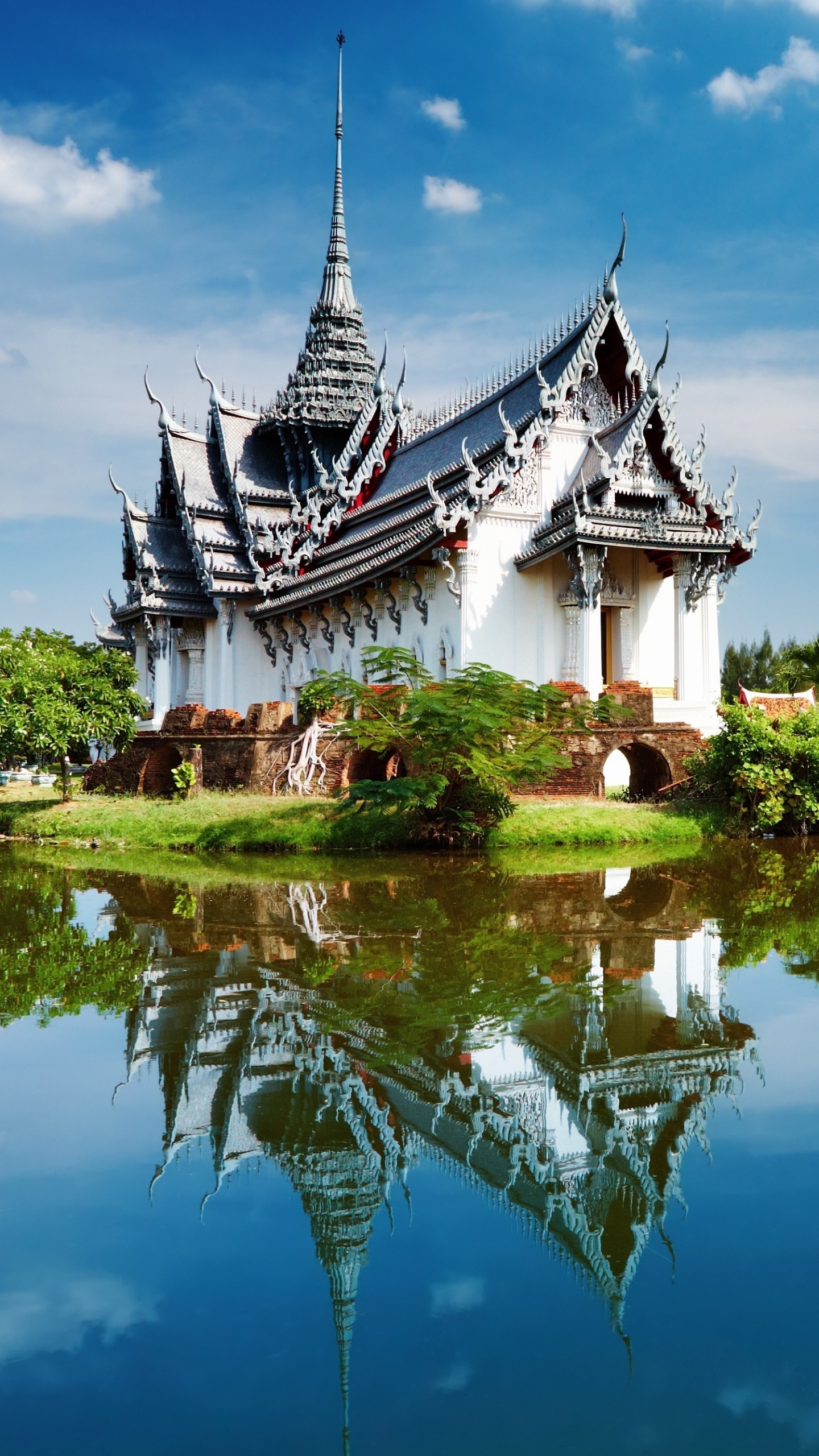 Обои отражение, природа, китайская архитектура, водный путь, парк для Google Pixel XL, Meizu Pro 7, Nokia 8, HTC U, Huawei P10 Quad HD, заставка, 1440x2560 картинка